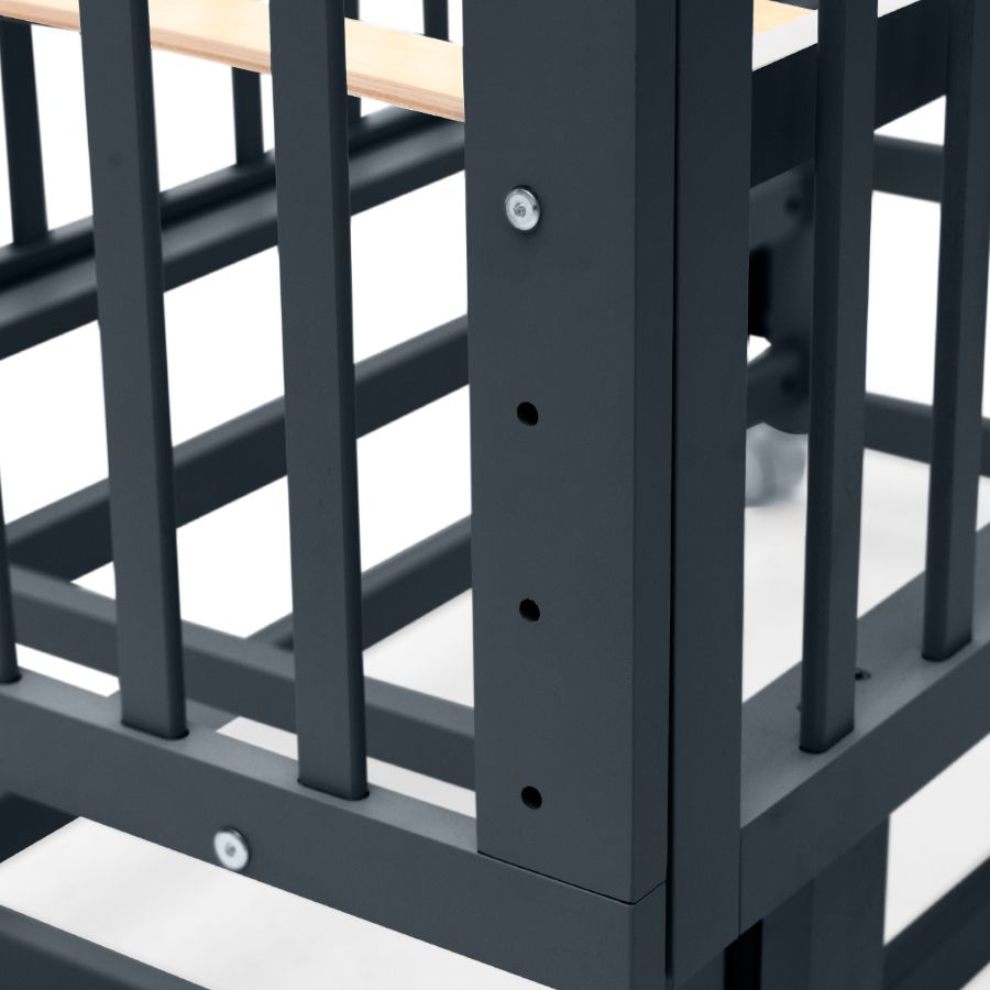 У ложа три положения: верхнее - для младенцев, среднее - для малышей, которые начали сидеть, нижнее - для тех, кто уже уверенно стоит на маленьких ножках.