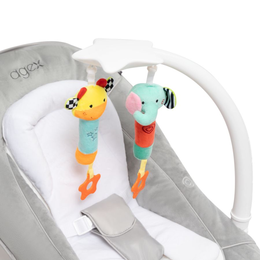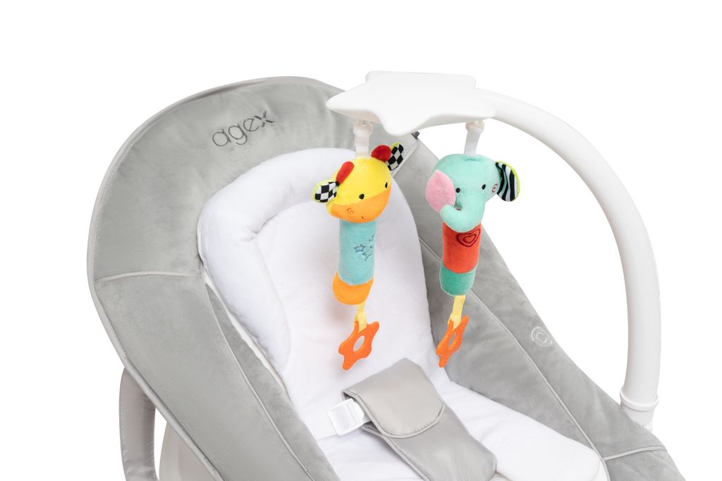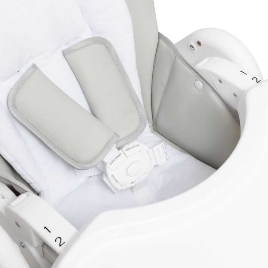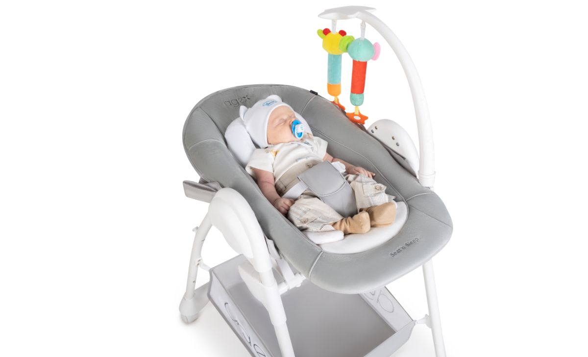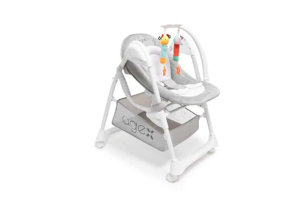 Agex Seat’n Sleep не только стул для кормления, но и удобный шезлонг. Снизу большая корзина для хранения любимых игрушек и разных мелочей. Пока малыш еще совсем маленький используйте шезлонг с регулируемой по наклону спинкой, обеспечивая комфортное положение для сна или игры. Когда малыш научится сидеть самостоятельно, можно пересаживать его в стульчик. Высота стульчика легко регулируется, что позволяет малышу сидеть с Вами за обеденным столом. Для безопасности используются 5-точечные ремни. Благодаря колесам, стульчик Эйджекс Сит н Слип очень мобильный и его легко передвигать по дому.