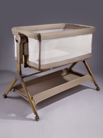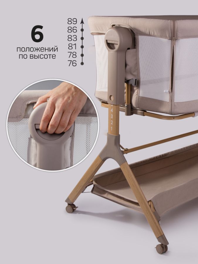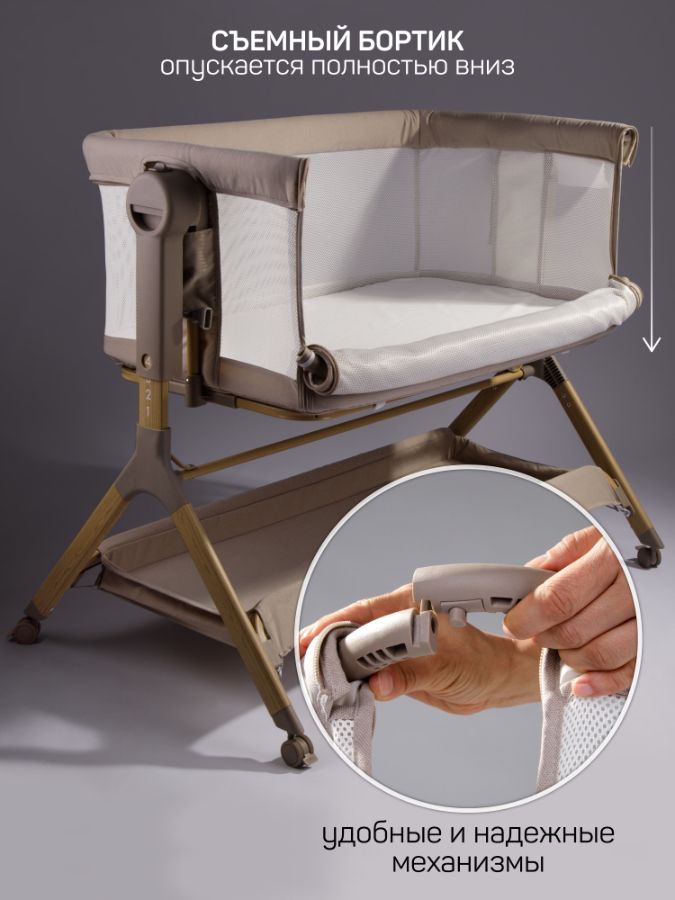 Можно опустить боковой бортик для максимального комфорта мамы и малыша.