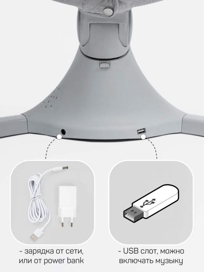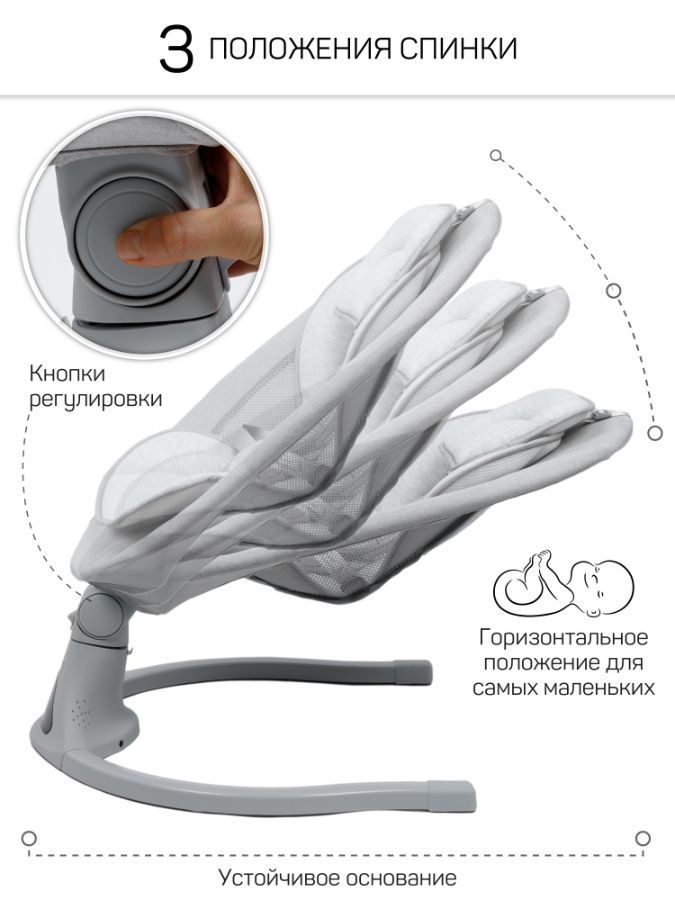 Электрокачели для новорожденных оснащены очаровательными мягкими игрушками с погремушками, это стимулирует развитие мелкой моторики рук и обеспечивает дополнительное развлечение для малыша.
