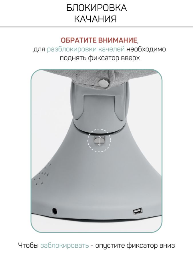 Благодаря большому количеству разнообразных функций, вы всегда сможете подобрать комфортное положение и развлечение для вашего малыша. 12 встроенных мелодий создадут комфортную и неповторимую атмосферу, с помощью функции Bluetooth вы сможете поставить любую понравившуюся мелодию прямо с телефона. Так же вы можете воспользоваться функцией usb, заранее записав на носитель любимые сказки и мелодии в формате mp3.