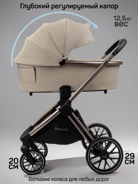 Универсальная коляска 2в1 AmaroBaby Genius - создана для максимального комфорта малыша и родителей. Модульная коляска имеет просторную широкую люльку и реверсивный прогулочный блок (прогулочный блок можно развернуть не только по ходу движения, но и лицом к маме).