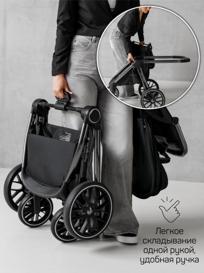 Коляску AmaroBaby Genius легко переносить благодаря облегченной раме и удобной ручкой по центру. АмароБеби Джениус имеет компактное сложение рамы с прогулочным блоком, не зависимо от того в какую сторону он установлен.