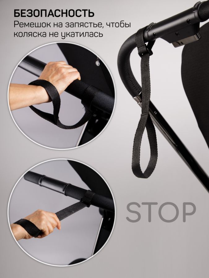 Ручка детской коляски телескопическая - регулируется по высоте в пяти положениях, выполнена из экокожи, не протирается со временем. В комплекте к ручке предусмотрен страховочный ремешок на запястье, от случайного скатывания на проезжую часть коляски. На родительской ручке можно расположить удобный рюкзак. Так же приятным бонусом в комплекте колясочки будут муфты-рукавички, которые согреют нежные ручки мамы даже в знойные морозы.
