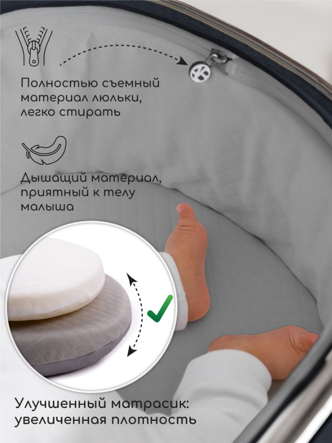 Коляска для новорожденных изготовлена из премиум материалов, ткань не выгорает на солнце, а специальная пропитка spf 50+ позволяет эффективно удерживать ультрафиолетовые лучи для дополнительного комфорта вашего малыша. Бампер-ограничитель перед ребенком откидной, выполнен из экокожи.