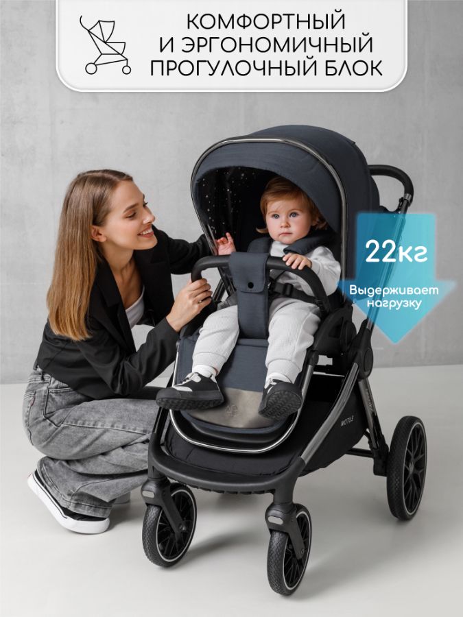 Обновленная универсальная коляска 3 в 1 Amarobaby Motus V2 создана для максимального комфорта ребенка и родителей. Модульная коляска имеет просторную люльку и реверсивный прогулочный блок.