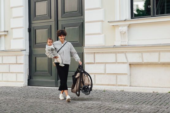 Прогуляйтесь по узким улочкам с нашей самой компактной системой для путешествий: ширина всего 55 см, вес всего 10 кг. Простота в обращении с коляской Britax Rio — всё для динамичного городского образа жизни. Так что отправляйтесь на прогулки в парке или навестите друзей в другом конце города. Нужно сэкономить место? - сложите RIO одной рукой, а затем легко поднимите её за ручку для переноски, чтобы преодолеть лестницу или спуститься в метро.