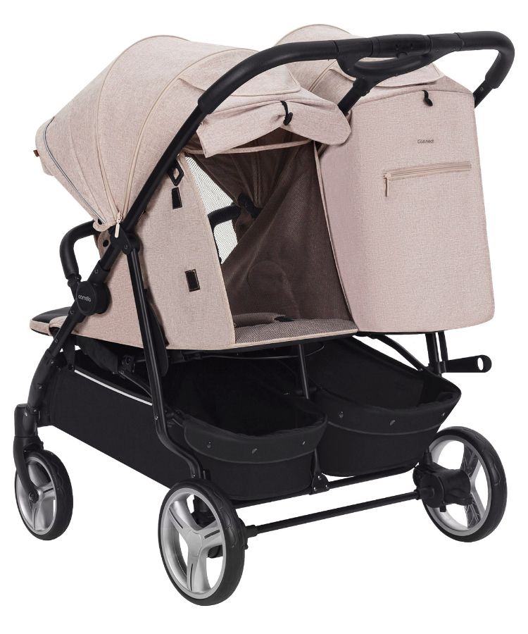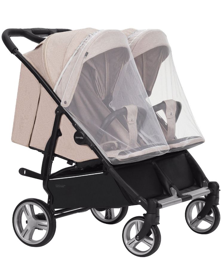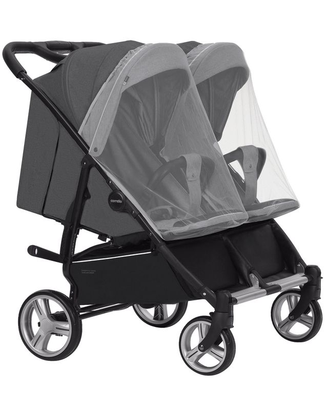 Оба сиденья оборудованы независимыми системами механической регулировки подножек, капюшонов и спинок. Антимоскитные сетки в комплекте.