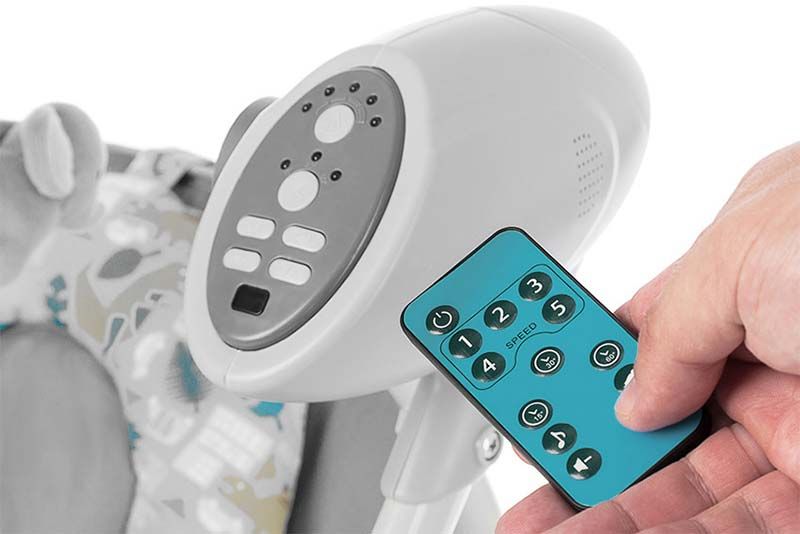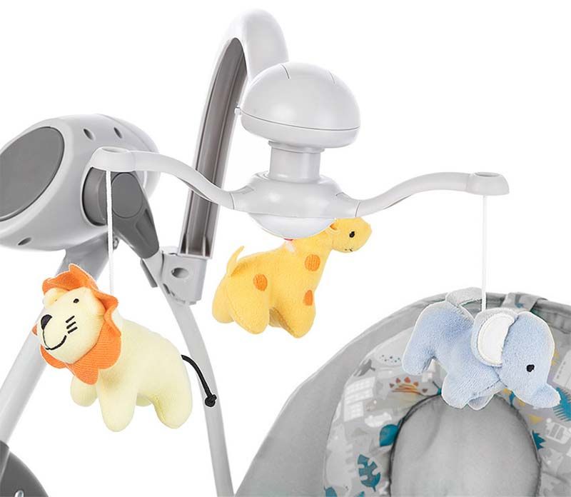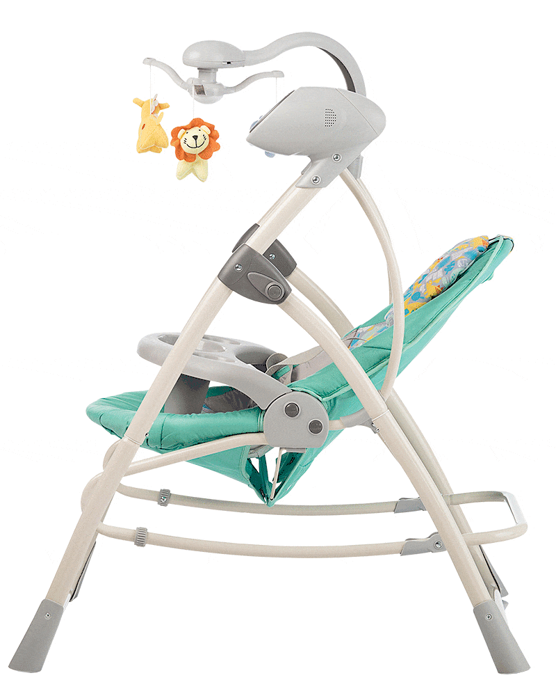 Так же данное кресло обладает достойным набором развлечений: вращающийся музыкальный мобиль, 16 приятных мелодий и 5 звуков природы с регулировкой громкости, столик с ограничителем. Мобиль со съёмными игрушками. Панель управления с пультом.