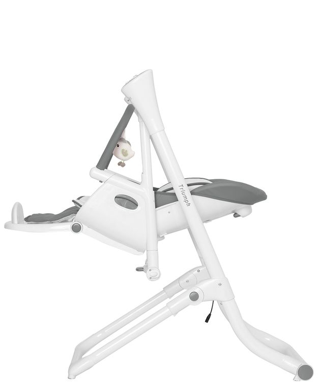 В режиме качельки Triumph работает как от сети, так и от обычных пальчиковых батареек. Столешницу можно заменить дугой с мягкими игрушками. А опустив сиденье и спинку стульчика вы получите детский шезлонг, удобный и надёжный.