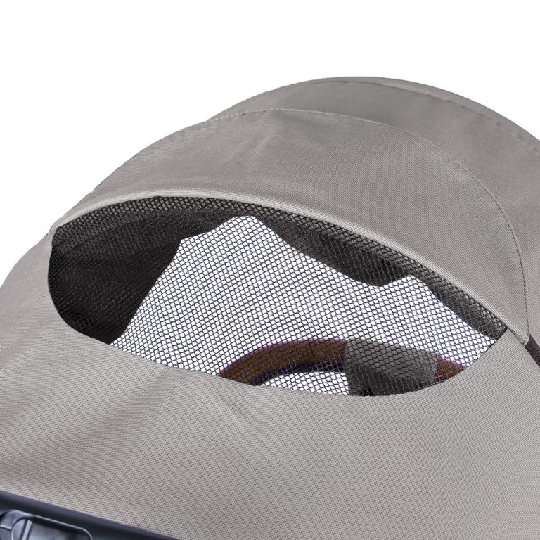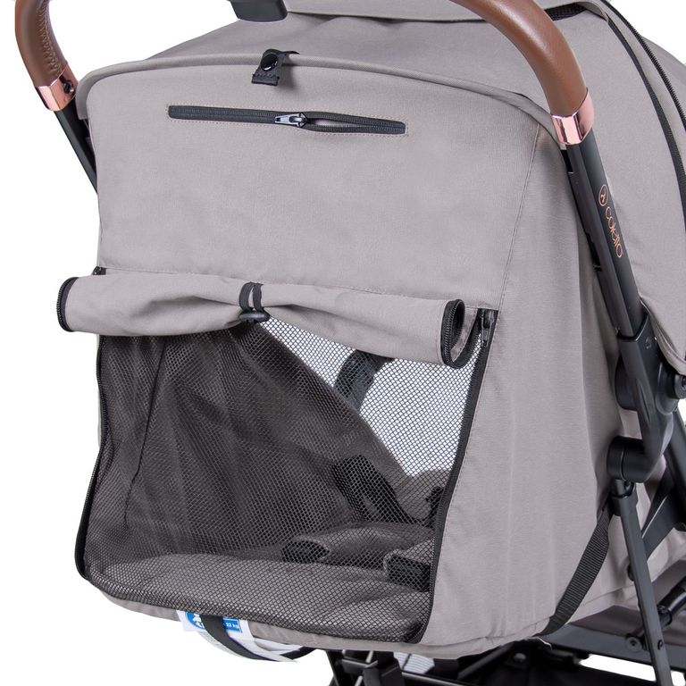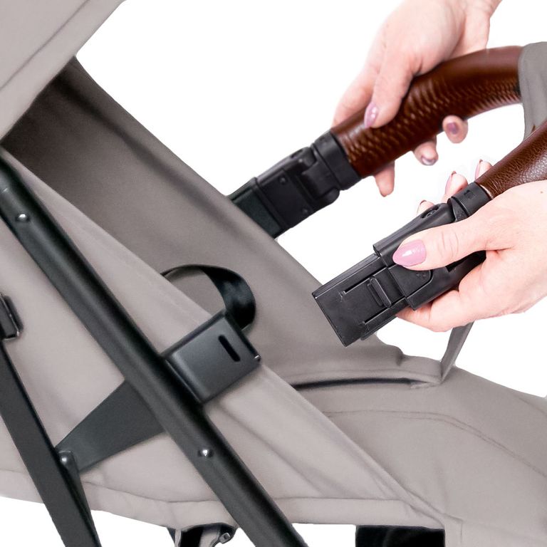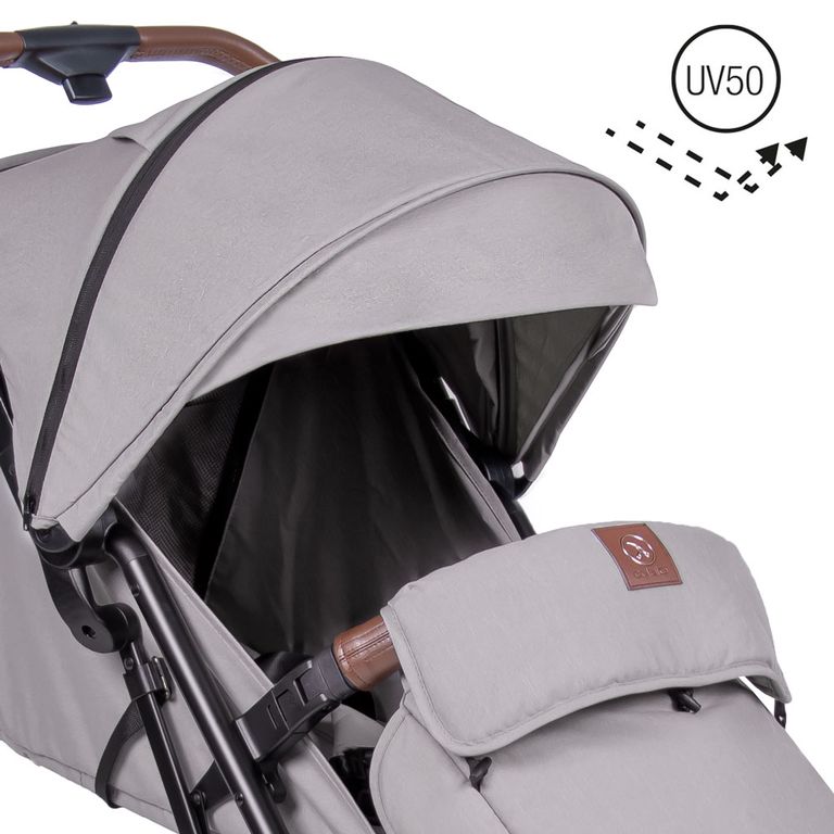 Ручка и бампер покрыты эко-кожей, которая прочна, устойчива к погодным условиям и ее легко держать в чистоте. Расширенная капор защитит от ветра и дождя, а сетчатое окно не только обеспечит циркуляцию воздуха, но и облегчит наблюдение за спящим малышом.