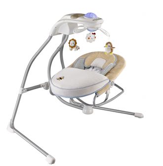 Поворотная конструкция сидения, деликатное укачивание в нескольких режимах и очаровательный вращающийся мобиль — незаменимая развивающая игрушка для новорожденного — дополняют перечень преимуществ этой модели. Завершают образ изящные линии основания и нежные, пастельные расцветки.