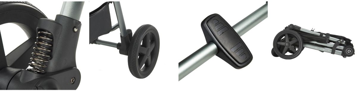 - Шасси коляски с колёсами и корзинкой для покупок;