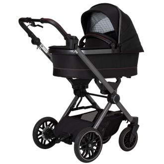 - Коляска имеет амортизацию на все 4 колеса, задняя подвеска выполнена с возможностью регулировки жесткости амортизации (2 режима: спорт и комфорт).