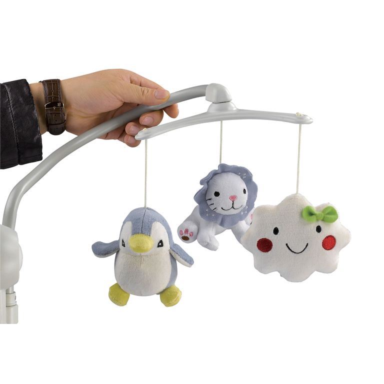Эргономичное и изящное основание. Мягкое, невероятно уютное креслице с удобными вкладками из приятного на ощупь материла. Пятиточечные ремни безопасности и накидка на ножки. Все это сделает пребывание младенца в электрокачелях приятным, беззаботным и безопасным: он с удовольствием будет дремать под аккомпанемент убаюкивающих мелодий или, напротив, увлеченно познавать окружающий мир, протягивая ручки к висящим над ним игрушкам.
