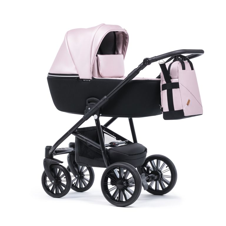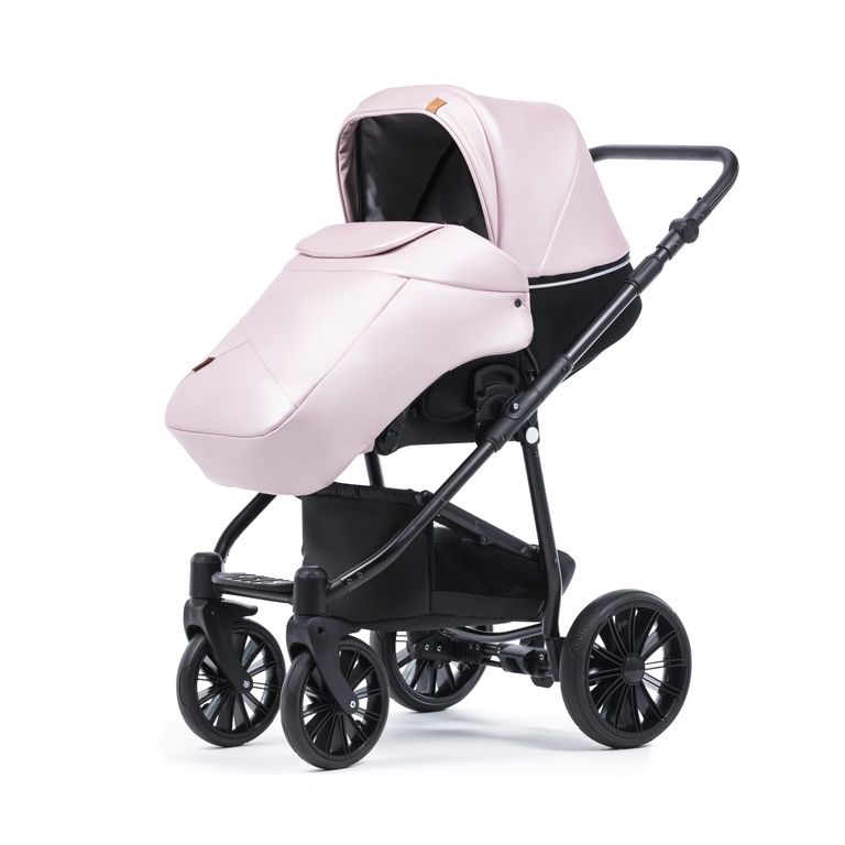 Мягкая экологичная кожа, двойные амортизаторы, устойчивая и легкоуправляемая коляска.