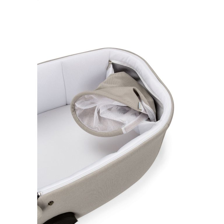 Матрасик и внутренняя подкладка, изготовленные из дышащего материала Fresco Jersey, подарят вашему малышу уют и комфортную прохладу в жаркое время года. Москитная сетка Ombra, из дышащей ткани Fresco Jersey со специальной затеняющей вставкой и UV-защитой UPF 50+, обеспечит вашему ребенку надежную защиту от насекомых и палящих солнечных лучей. Сетка всегда будет под рукой, когда понадобится, для нее в люльке предусмотрен удобный кармашек на молнии.