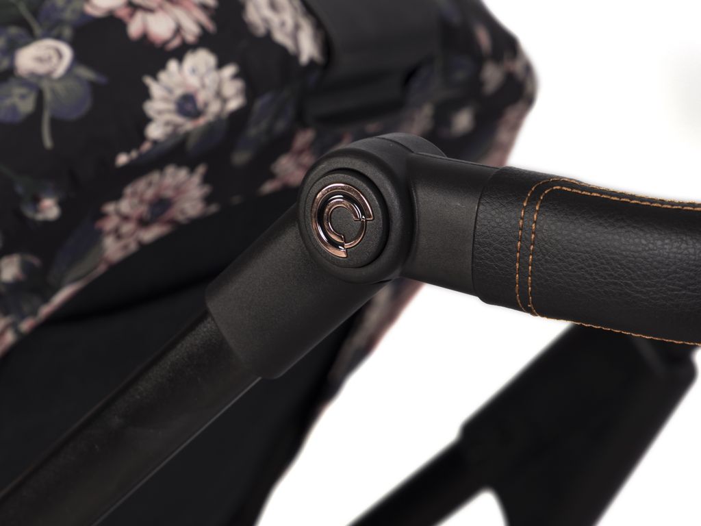 Коляска Cavoe Axo Style была модернизирована регулируемой по высоте ручкой. Эта функция позволяет комфортно управлять коляской как высоким, так и невысоким родителям. Кнопки регулировки ручки украшены элегантным медным логотипом Cavoe, придающим новому Axo Style новый блеск.