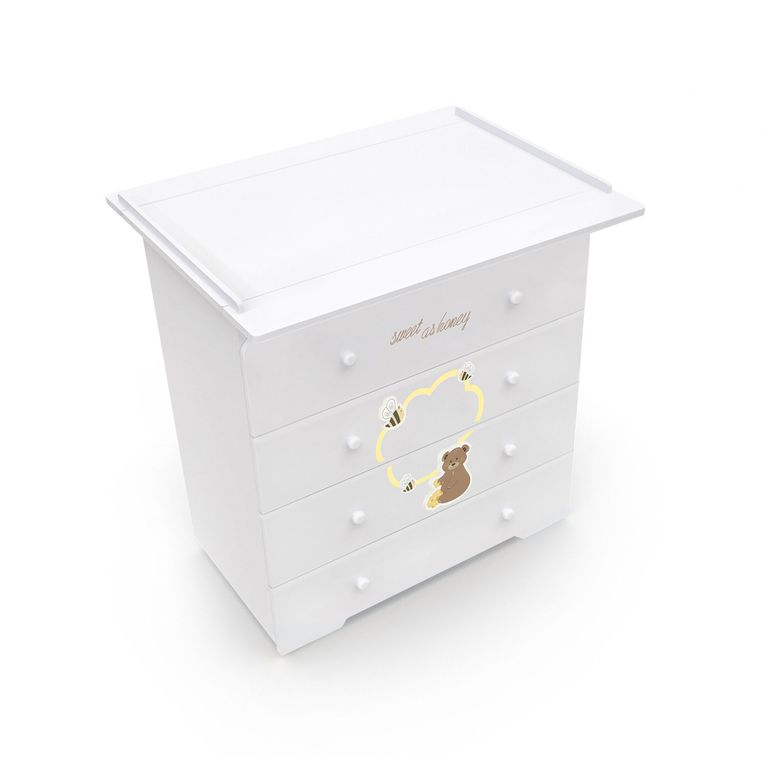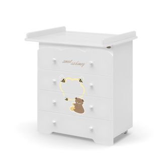 Итальянский детский пеленальный комод для новорожденных Nuovita Stanzione Honey Bear является частью одноименной коллекции мебели для детской комнаты, включающей кроватку, набор постельного белья и пеленальную накладку на комод.