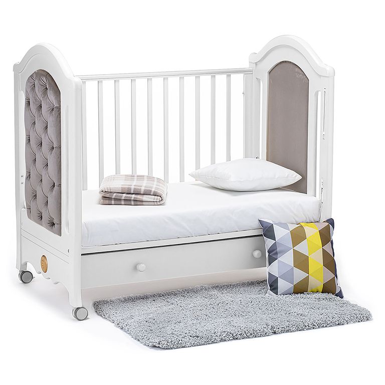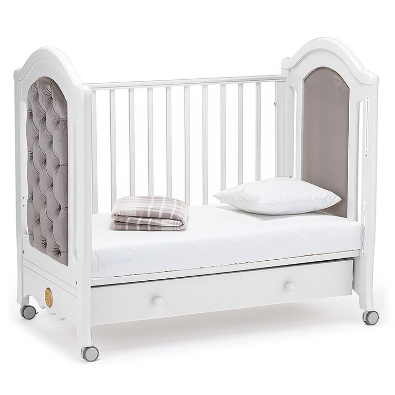 Детская кровать Grazia от итальянской марки Nuovita — это комфортная классическая кроватка для малыша, изготовленная из массива бука. Яркой особенностью модели является запоминающийся дизайн, основным элементом которого выступает объемная «каретная» стяжка на внешней стороне спинок.