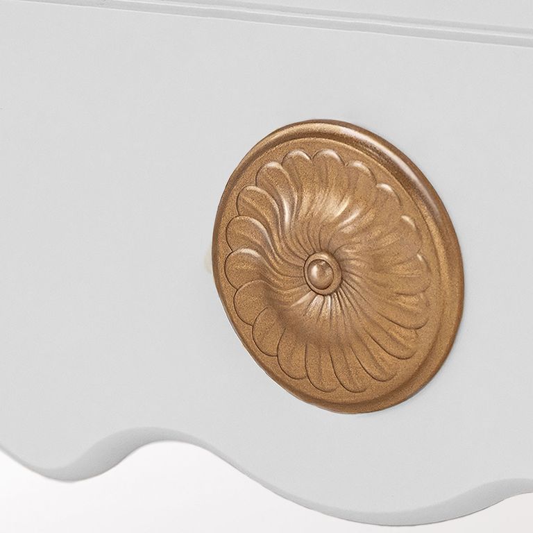 Корпус кроватки и основные элементы сделаны из массива бука, изящные фигурные спинки выполнены из МДФ, в конструкции ящика для белья используется ЛДСП. Все материалы, покрытия и фурнитура соответствуют европейским требованиям, предъявляемым к безопасности детской мебели.