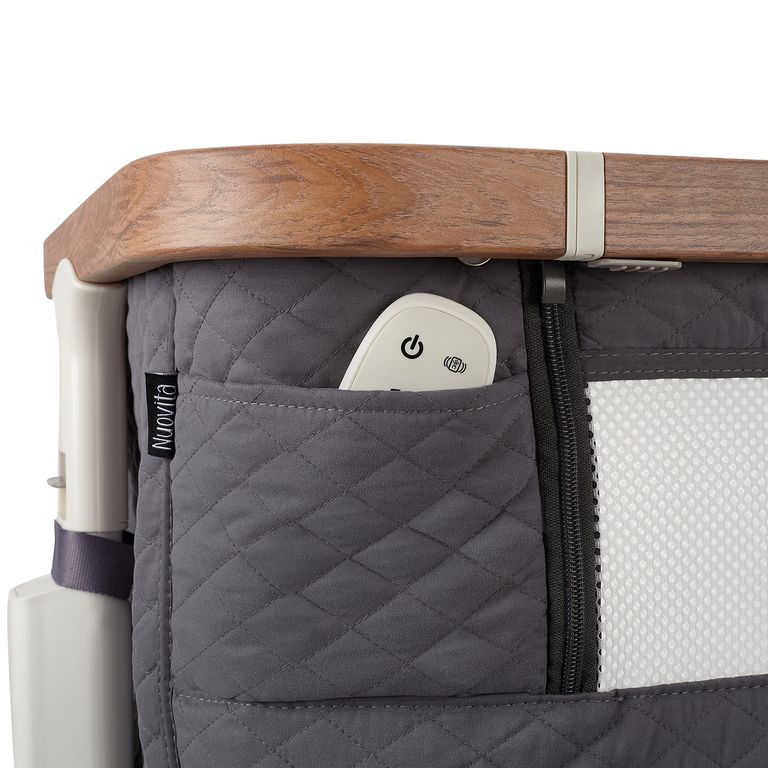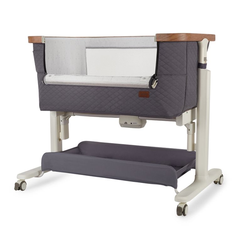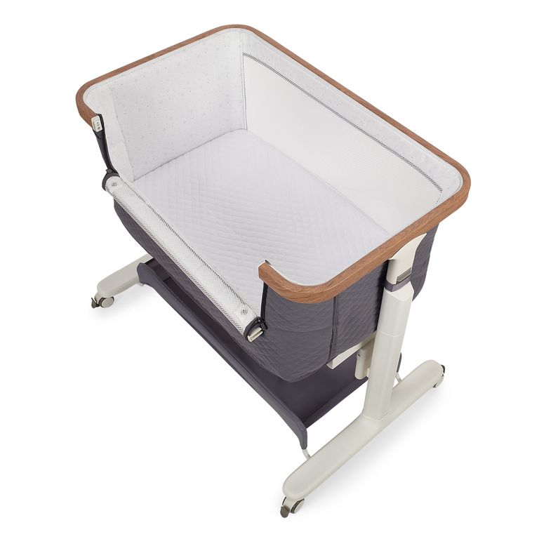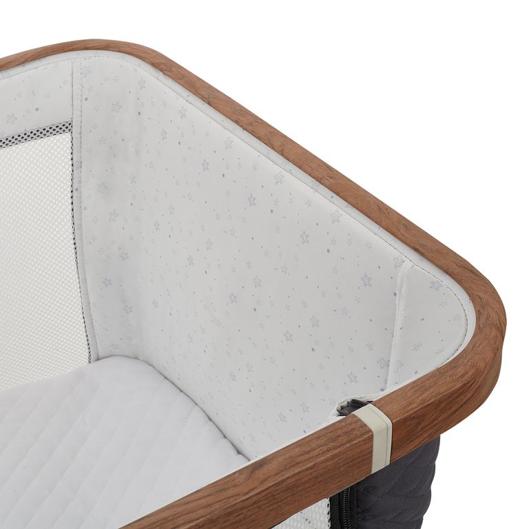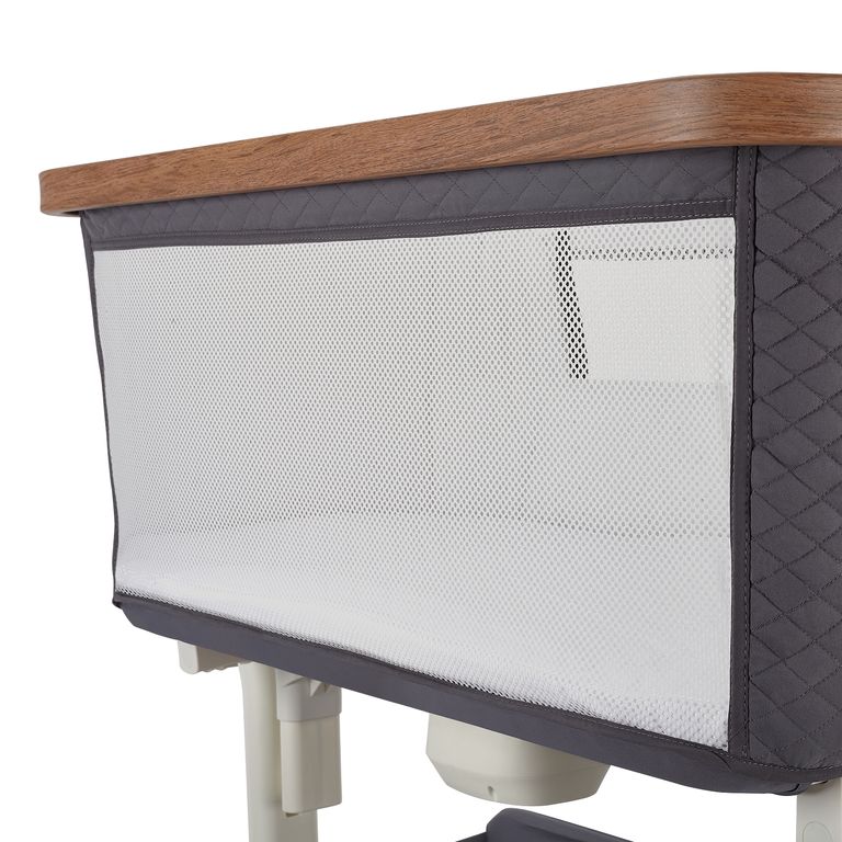 Сетчатые стенки колыбели обеспечивают естественную вентиляцию и поддерживают комфортный температурный режим, позволяя родителям легко наблюдать за малышом. Опускающаяся боковая стенка упрощает ночные кормления и наблюдение за ребёнком, делая каждую ночь спокойной и удобной.
