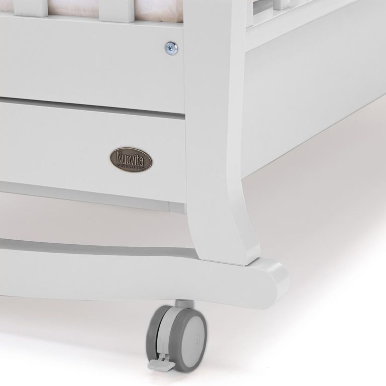 По мере роста ребенка родители могут демонтировать боковую стенку, что позволит малышу самостоятельно ложиться в кроватку. В дальнейшем кровать можно доукомплектовать мягкими подушками и использовать в качестве детского диванчика. Кроватка Nuovita Perla dondolo изготовлена из массива бука, благодаря чему имеет отличные качественные характеристики. Покрытие, элементы декора и фурнитура соответствуют европейским нормам безопасности.
