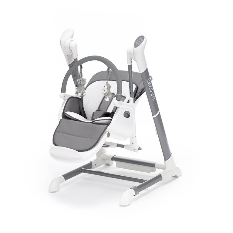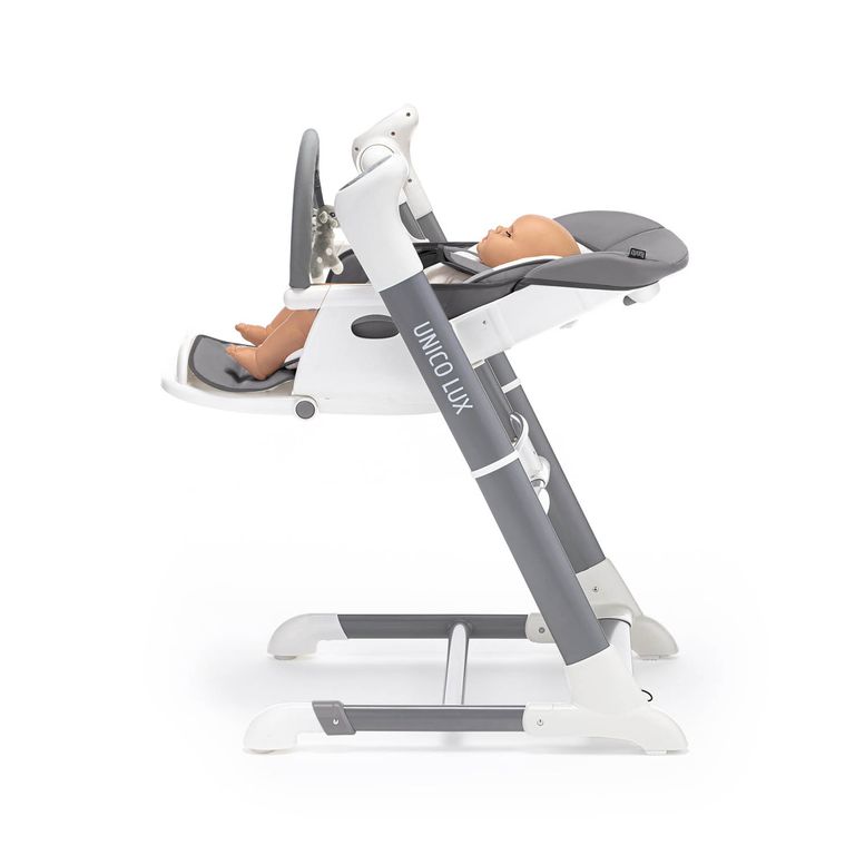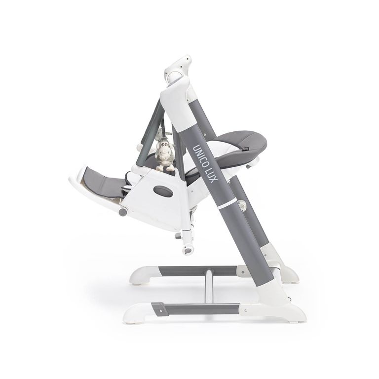 Unico Lux от бренда Nuovita — это стульчик для кормления 2в1, который можно использовать как шезлонг и качели для грудничка. Он пригодится с самого рождения: шезлонг расположен высоко от пола, сиденье раскладывается в полулежачем положении, электронный механизм укачивает ребенка и проигрывает музыкальные композиции. Когда малыш подрастет, детский стульчик для кормления позволит усадить его за один стол со взрослыми или отдельно, чтобы он мог кушать на специальном столике, рисовать или играть.