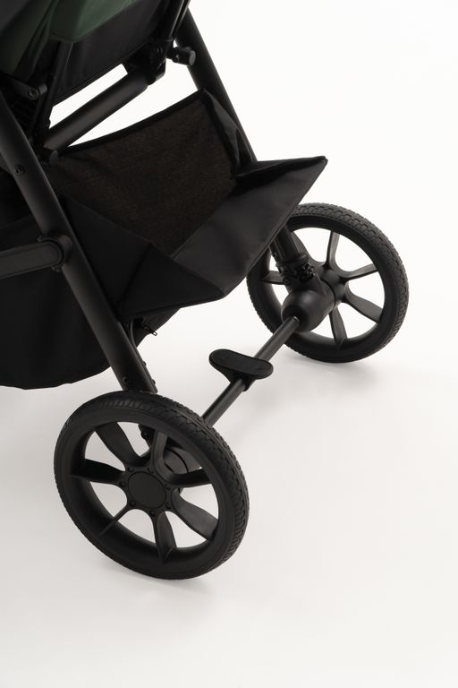 Износостойкие резиновые колёса с цепким протектором, передние колёса теперь оборудованы системой автоматической фиксации в положении "прямо". Отзывчивый спаренный тормоз и мягкая пружинная амортизация на каждом колесе.