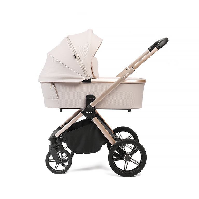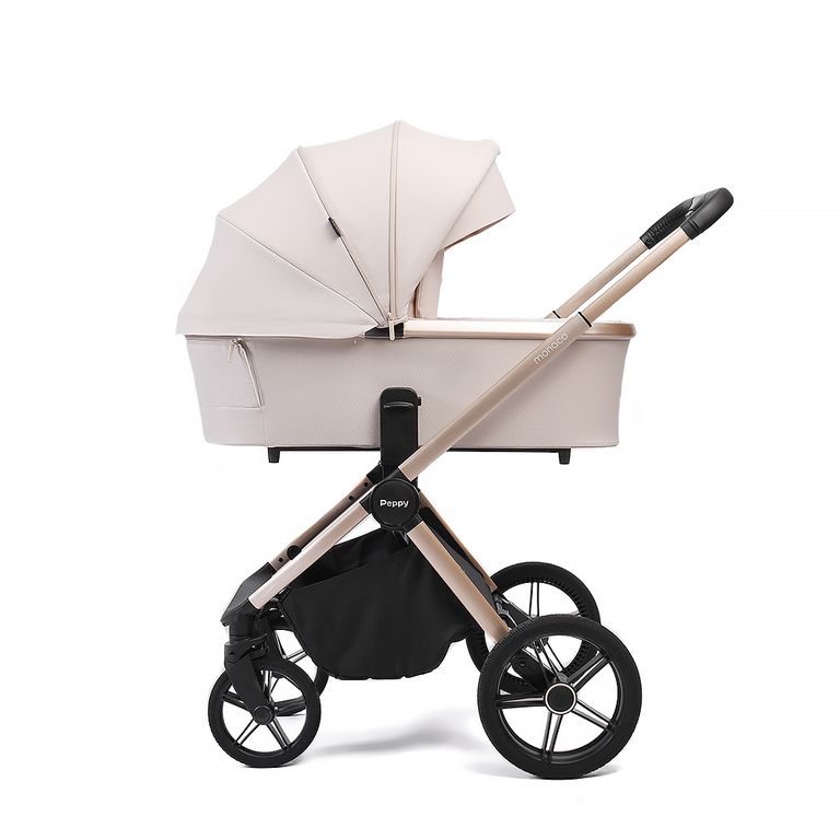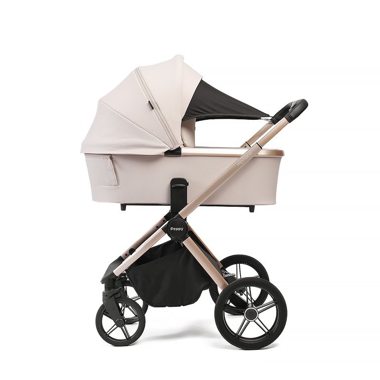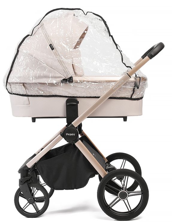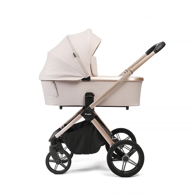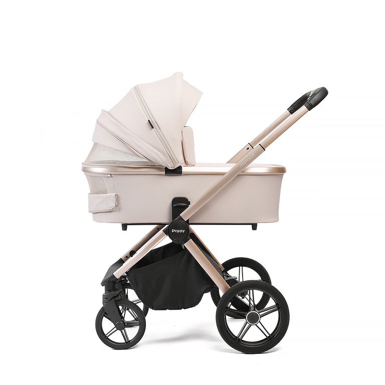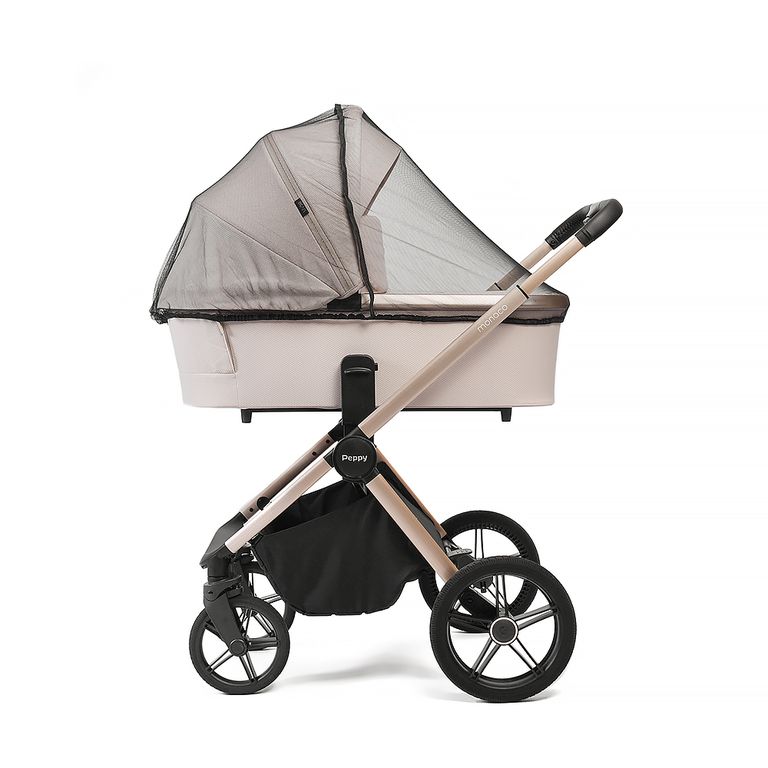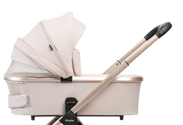 - Peppy Monaco укомплектована вместительной корзиной, которая увеличивается в размерах с расширением на магнитах и оснащена двумя дополнительными карманами для мелочей, где удобно спрятать москитную сетку. Грузоподъёмность корзины 5 кг.
