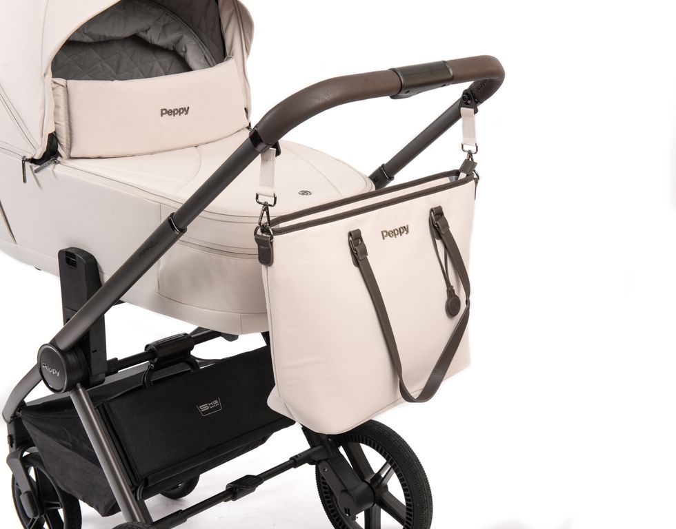 - Шасси коляски Peppy Monaco 2 в 1 узкое – всего 57 см! Поэтому она пройдёт в любой дверной проём или лифт;