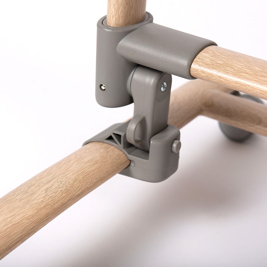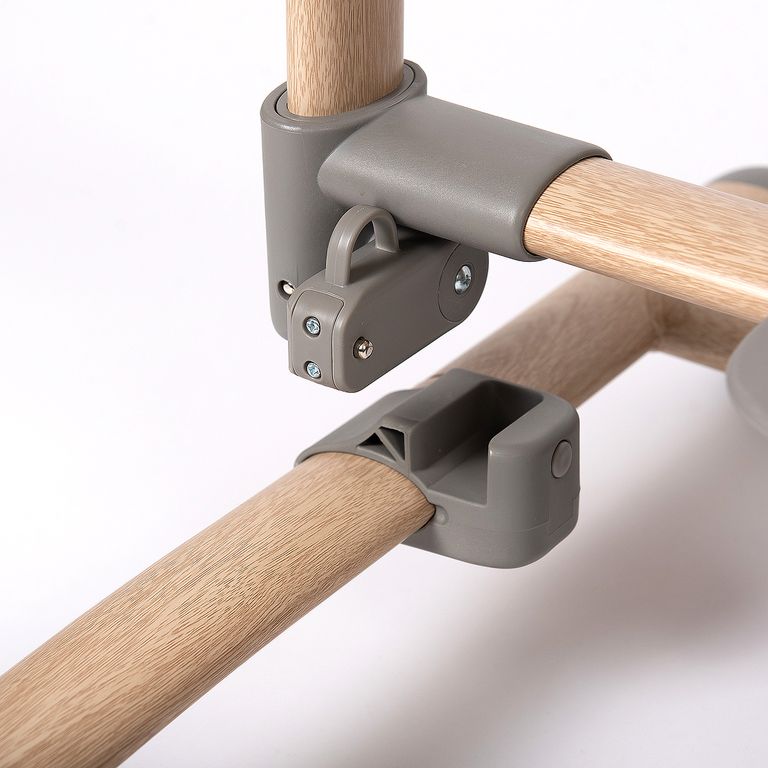 Высота ложа регулируется в 8 положениях, можно установить угол наклона для естественного срыгивания. В нижней части каркаса расположен блокиратор укачивания. Для развлечения малыша над люлькой расположена мобиль-карусель с 3-мя игрушками.