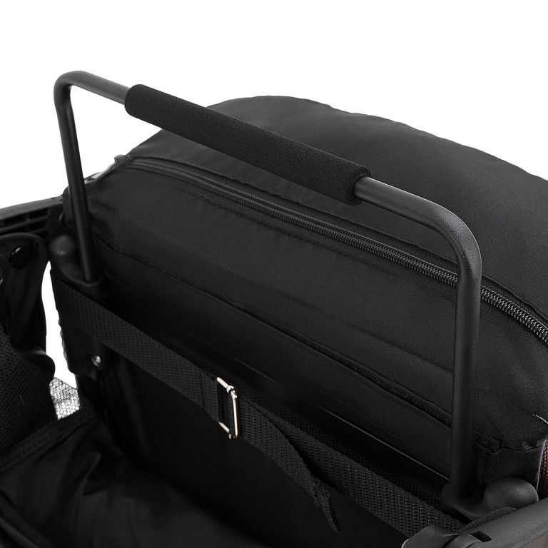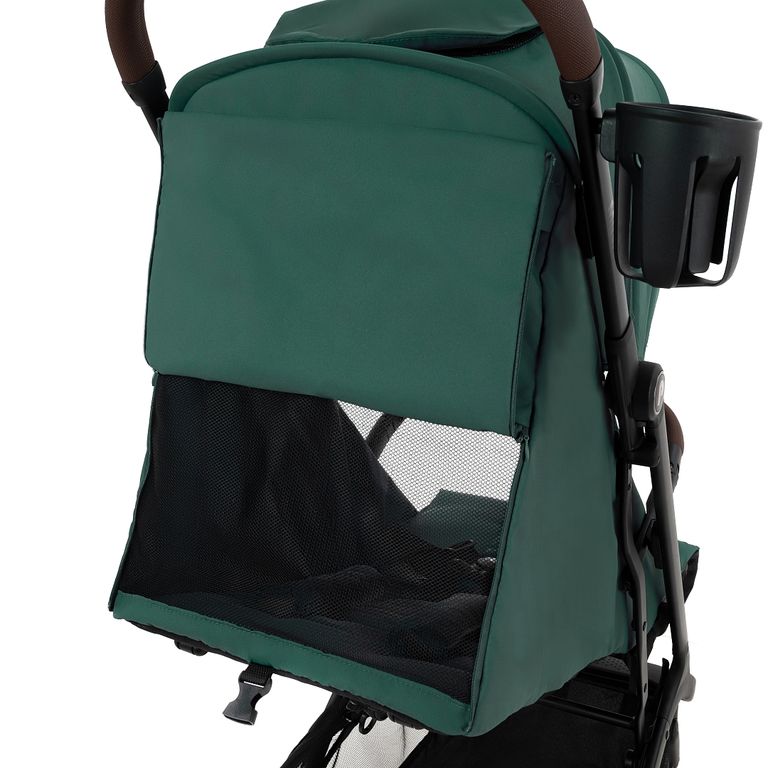Ребенок сможет комфортно сидеть, отдыхать и даже спать в коляске. Подножка поднимается, позволяя ножкам удобно лежать на коляске, а не висеть в воздухе. Часть подножки легко моется после прогулки. С обратной стороны подножки есть кармашек на молнии, куда можно положить москитную сетку, которая всегда будет с вами.