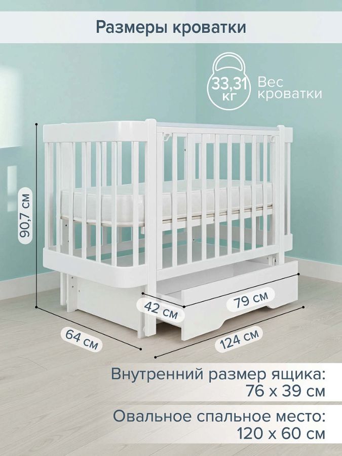 Детская кроватка из массива березы, для детей от 0 до 3х лет. Размеры 120х60 см. (Овальная). Она идеально впишется в любой интерьер.