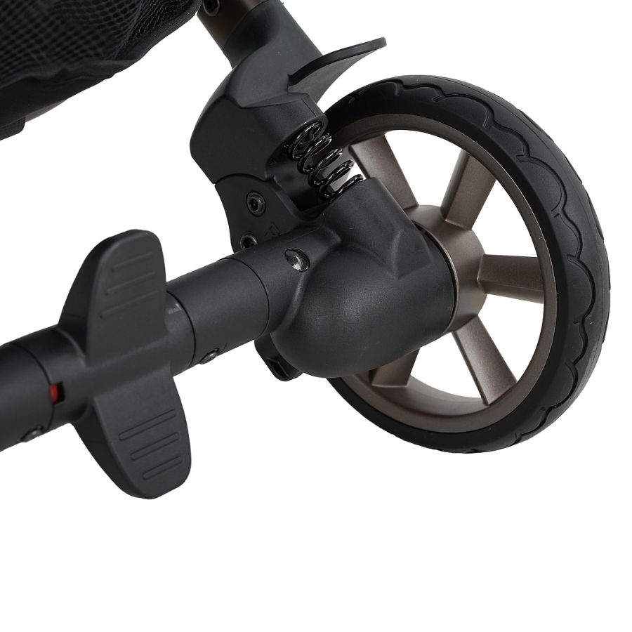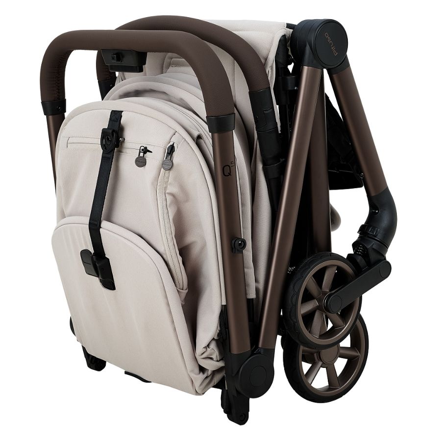 Ультра компактная. Благодаря своему компактному размеру (26x43x50см без колёс), коляска Q5 удобно транспортируется и в сложенном виде занимает мало места. Складывается одной рукой, в вертикальном положении стоит без опоры, сохраняя чистоту текстиля и ручки. Складной механизм по типу «книжка». Для переноски коляски предусмотрен удобный плечевой ремень.