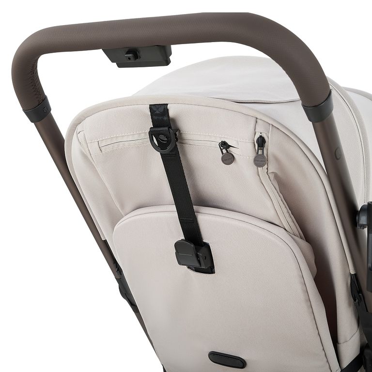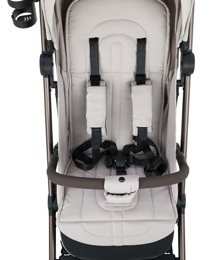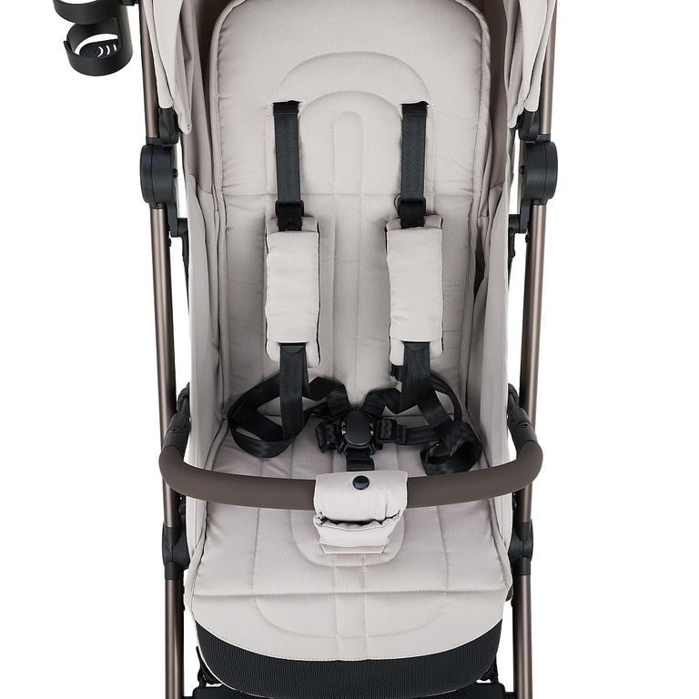 Коляска оснащена мягким бампером, который облегчает доступ к сиденью, и плечевыми ремнями с мягкой подкладкой для защиты нежной кожи ребёнка. Есть паховый ограничитель (перемычка между ножек), который пристегивается к бамперу. Магнитный замок на пятиточечных ремнях безопасности.