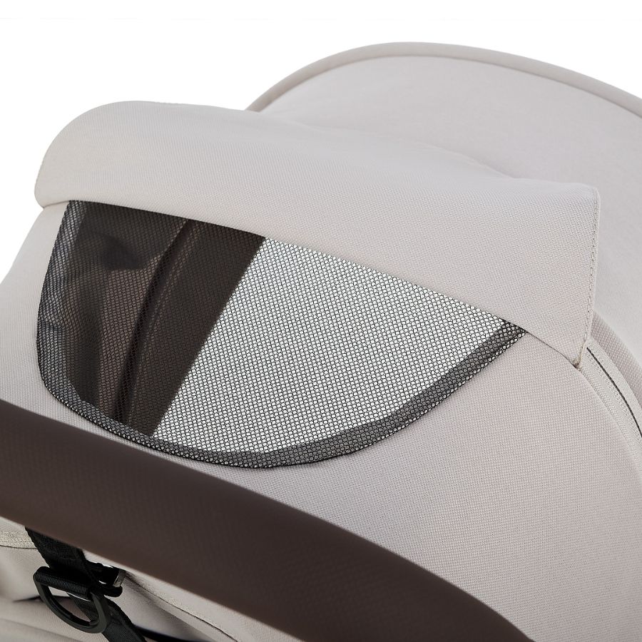 Особенности коляски Q5 включают регулируемую вентиляцию для максимального комфорта, большое открывающееся окно с магнитной системой, обеспечивающее лёгкость открывания и закрывания, а также защиту от солнца UPF50+.