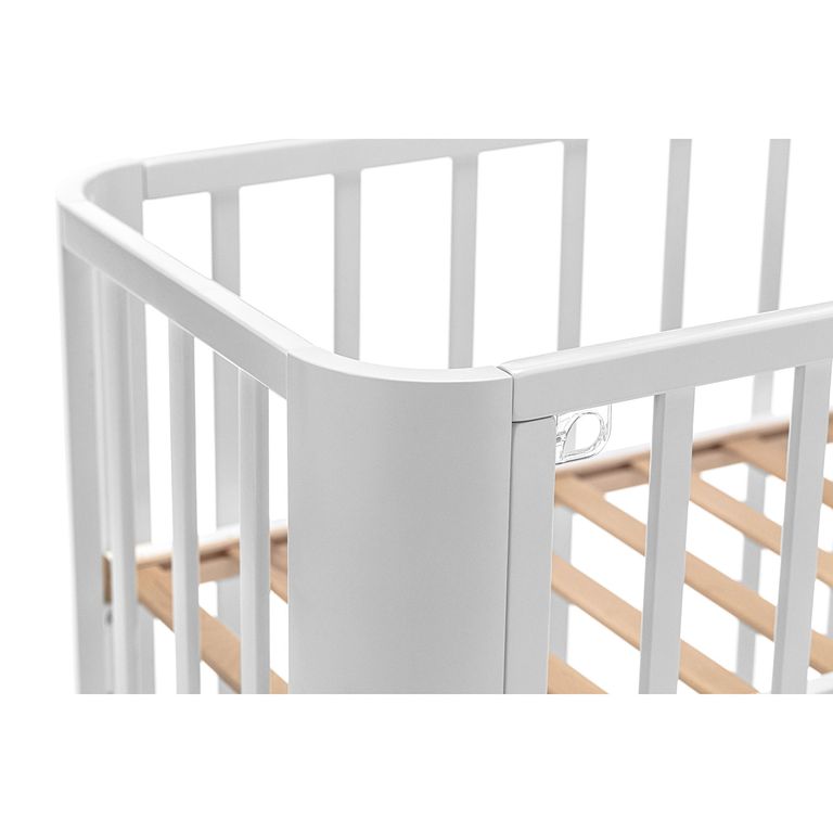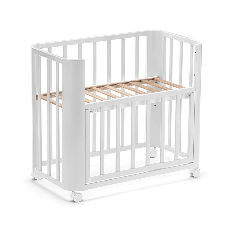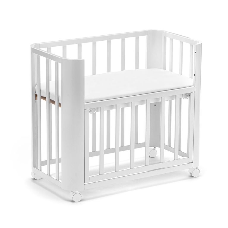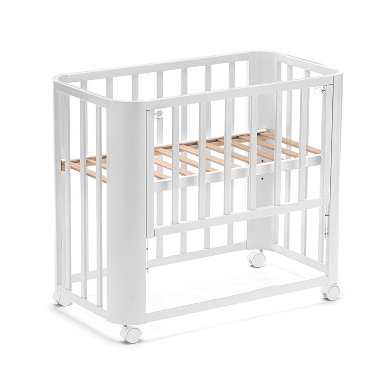 Детская кроватка Accanto Ferrara от итальянского бренда Nuovita — это стильная приставная кровать для новорожденных, сделанная из натурального дерева. Благодаря такой кроватке малыш быстрее привыкнет к самостоятельному сну. Ее можно использовать как в прикроватном варианте, так и в качестве отдельно стоящей колыбели. Модель имеет лаконичный дизайн, подчеркнутый высококачественными материалами, покрытием и фурнитурой.