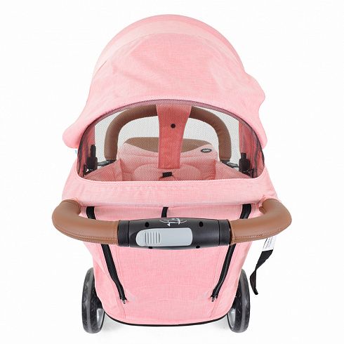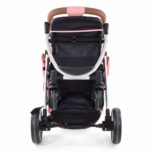 Верхняя часть коляски выполнена из современного инновационного материала, обладающего повышенной износостойкостью и устойчивого к выцветанию. Тканевые элементы являются съёмными, что облегчает поддержание коляски в чистоте. Регулируемая подножка имеет вставку из экокожи, что обеспечивает её лёгкую очистку. Также экокожей покрыт съёмный бампер и эргономичная ручка коляски. Утеплённая накидка на ножки и объёмный капор с бесшумным механизмом раскладки помогают создать малышу максимальный комфорт. Для вентиляции в задней секции капора предусмотрено окошко. Для перевозки различных «мелочей» установлена вместительная корзина для покупок, которая находится достаточно высоко от земли.