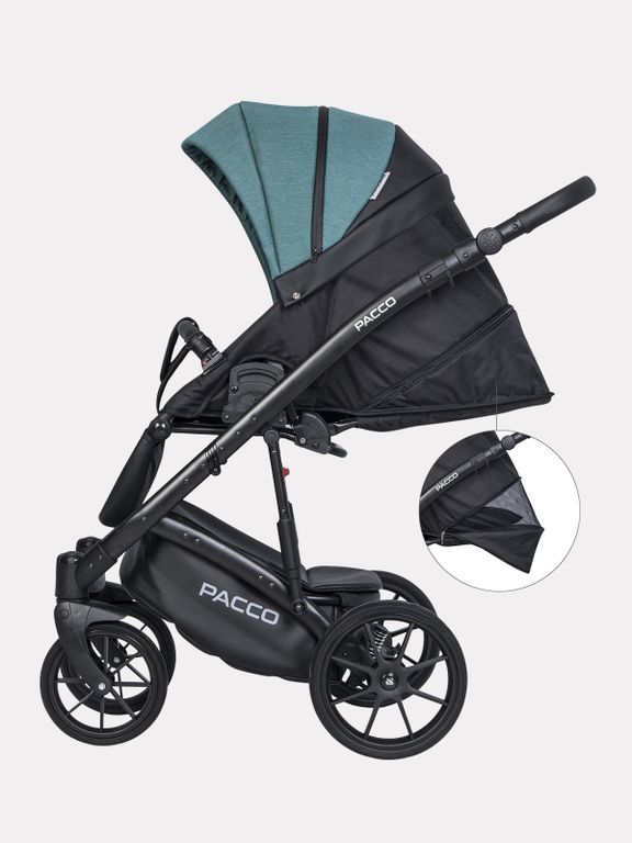 Детская коляска 2 в 1 Riko Basic Pacco покорит вас: быстросъемными блоками; ветрозащитным отворотом с окошком; реверсивным прогулочным блоком; также прогулочный блок складывается вместе с рамой.