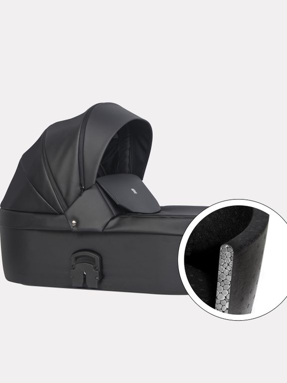 Уникальность люльки заключается в современном материале Piocelan с высоким термическим сопротивлением. Такая люлька очень легкая и даже миниатюрная мама без труда сможет снять люльку с шасси и занести домой со спящим ребенком. Зимой люлька сохраняет тепло внутри коляски, а летом, наоборот, не нагревается, поддерживая комфортную температуру для малыша. В сочетании с качественной обивкой, которая надежно защитит от любых осадков и ветра, получается надежная всесезонная коляска.