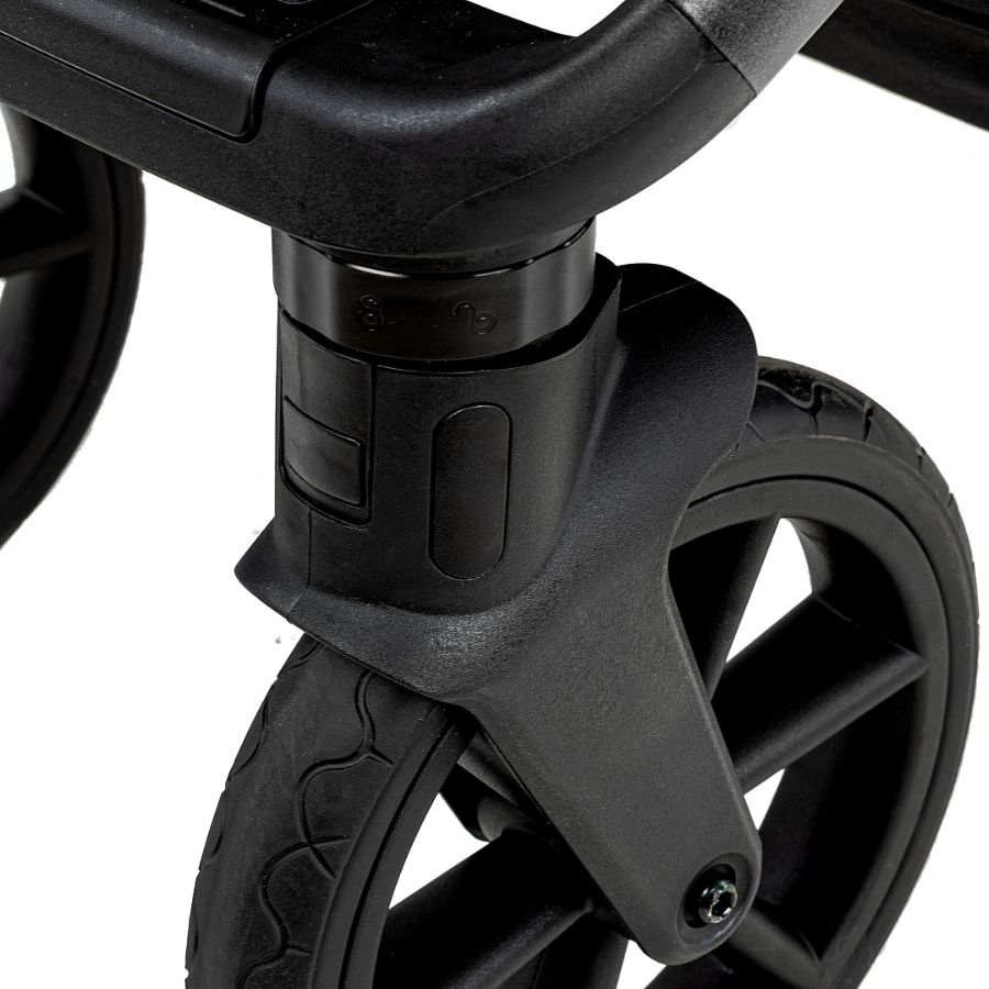 - Колёса ненадувные бесшумные, передние 10 дюймов (25,4 см), задние 12 дюймов (30,48 см). В дисках установлены подшипники для обеспечения мягкого хода. Передние колёса поворачиваются на 360 градусов с возможностью фиксации положения "только прямо" с помощью удобного кольца.