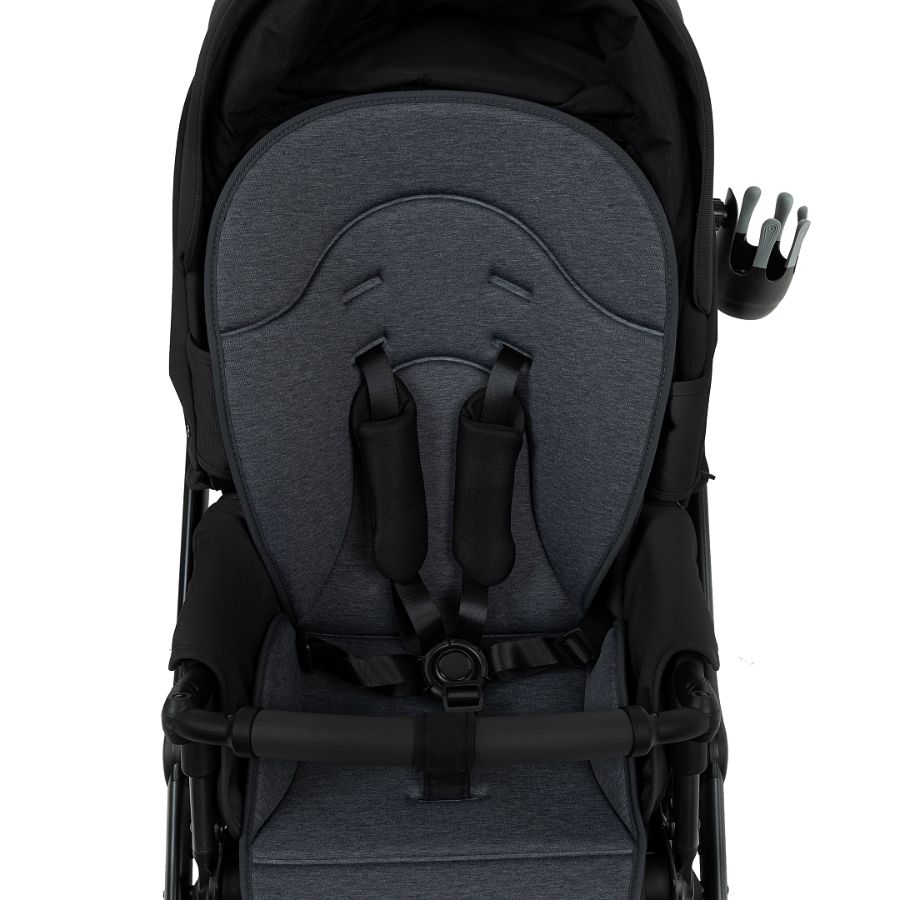 - Прогулочный блок имеет пятиточечные ремни безопасности и бампер-ограничитель с отделкой из экокожи. Бампер можно отсоединить с одной стороны и просто откинуть для удобства посадки ребенка.
