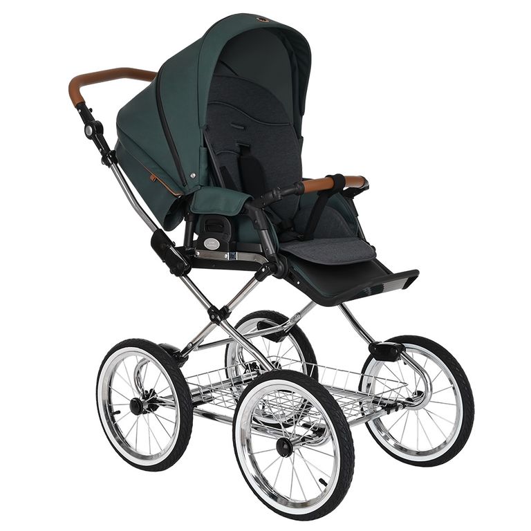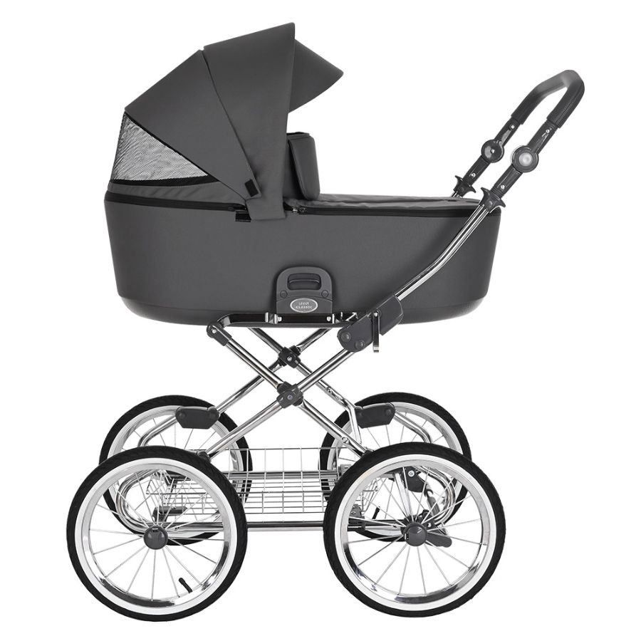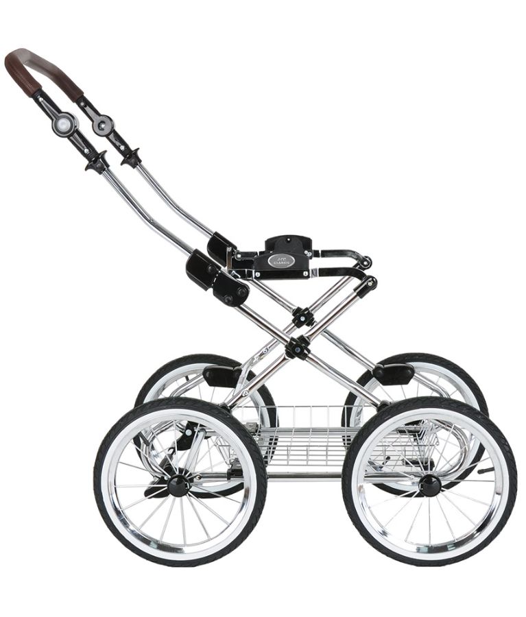 Коляска Roan Bass Next Classic - на хромированной классической раме. Новая европейская детская коляска предназначена для детей от 0 лет. Roan Bass Next Classic -изготовлена в строгом стиле с использованием качественной фурнитуры. Лаконичный модный дизайн, простота и удобство надежных механизмов - это то, чем вдохновлялись инженеры фирмы Roan. В следствие мы имеем стильную современную люльку в интересном исполнении и лучшую классическую мягкую раму. На раму можно установить 3 типа колёс - стандартные 14 дюймовые надувные 36 см, белые 14 дюймовые ненадувные 36 см и классические 12 дюймовые надувные 30 см в диаметре. Колёса не поворотные, но коляска управляется достаточно легко. Главное достоинство такой рамы, что при движении по труднопроходимой местности колеса не вибрируют, коляска движется очень легко, а идеальная амортизация, основанная на кулисах, закрепленных в четырех точках, обеспечивает хороший сон для ребенка.