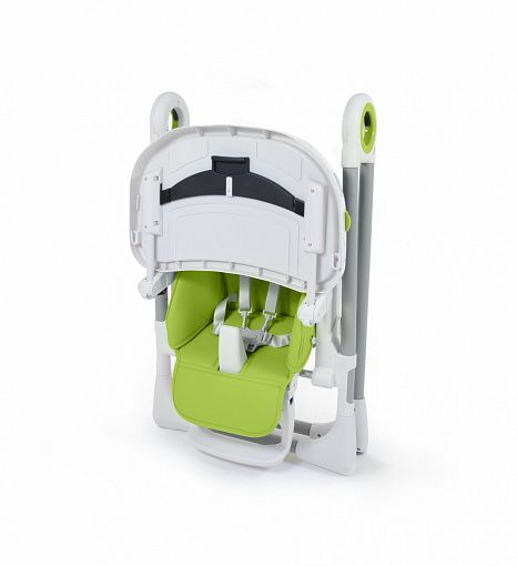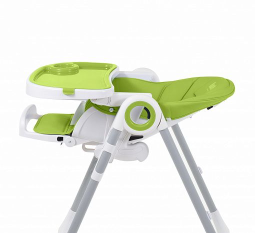 Регулировка подставки для ног возможна в трёх вариантах. Для того, чтобы приподнять подножку, её достаточно просто потянуть вверх, и она с лёгкостью примет желаемое положение. Для опускания предусмотрены два рычага по бокам конструкции, нажимая на которые, родители могут установить нужную высоту. Тем самым полностью исключается возможность самопроизвольного опускания подножки. Столешница укомплектована съёмным подносом с углублением для чашки или бутылочки, что создаёт дополнительные преимущества, облегчая кормление малыша и последующую уборку. Её также можно легко снять, для этого достаточно потянуть, нажимая, скрытую под ней рукоятку. Высота столика может регулироваться в двух положениях, поэтому растущему ребёнку всегда будет удобно кушать.