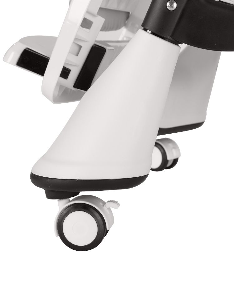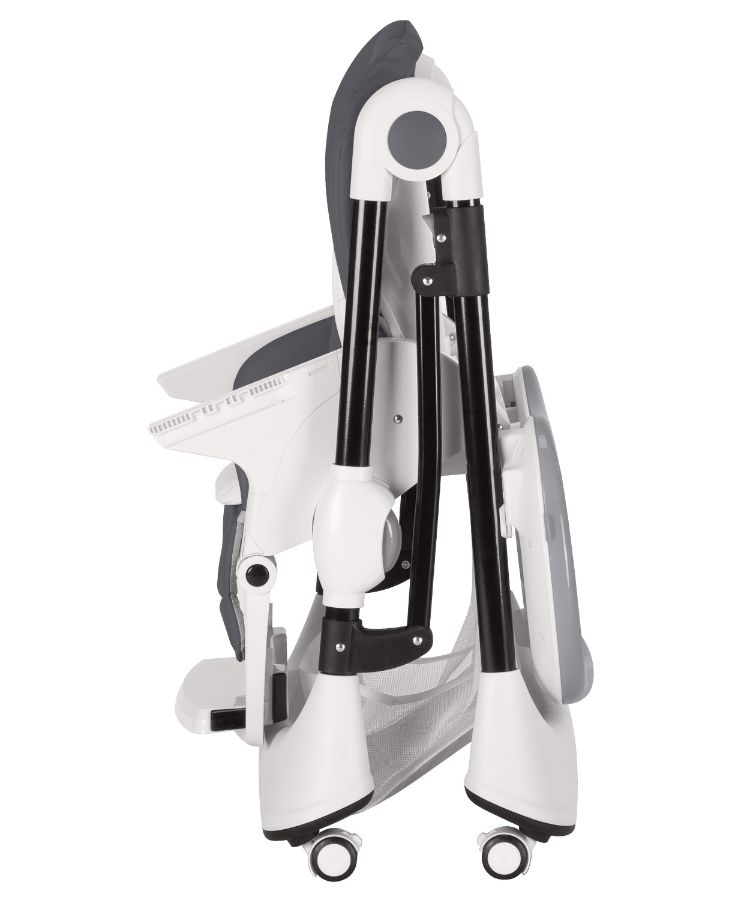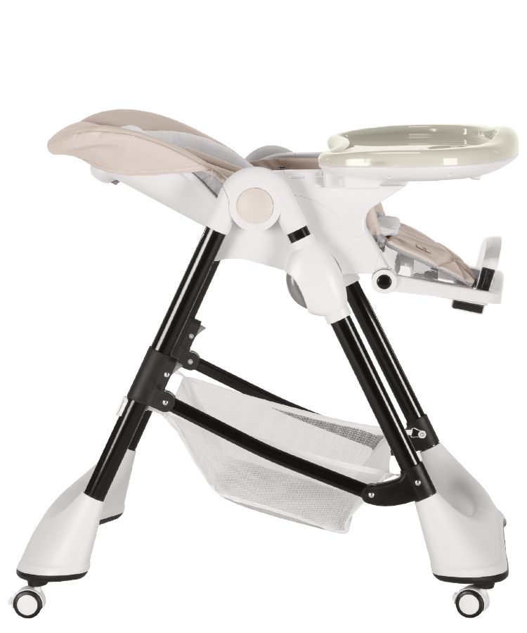 Столешница регулируется по степени выдвижения и имеет ограничитель от сползания. Поднос имеет выемку-подстаканник и дополнительную поверхность. Столешница крепиться к раме стульчика. Присутствует корзина для мелочей.