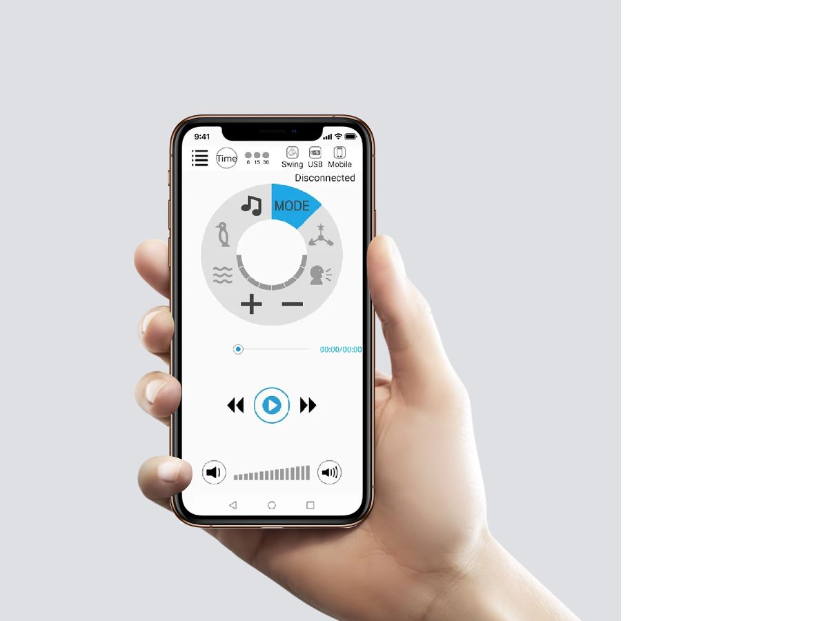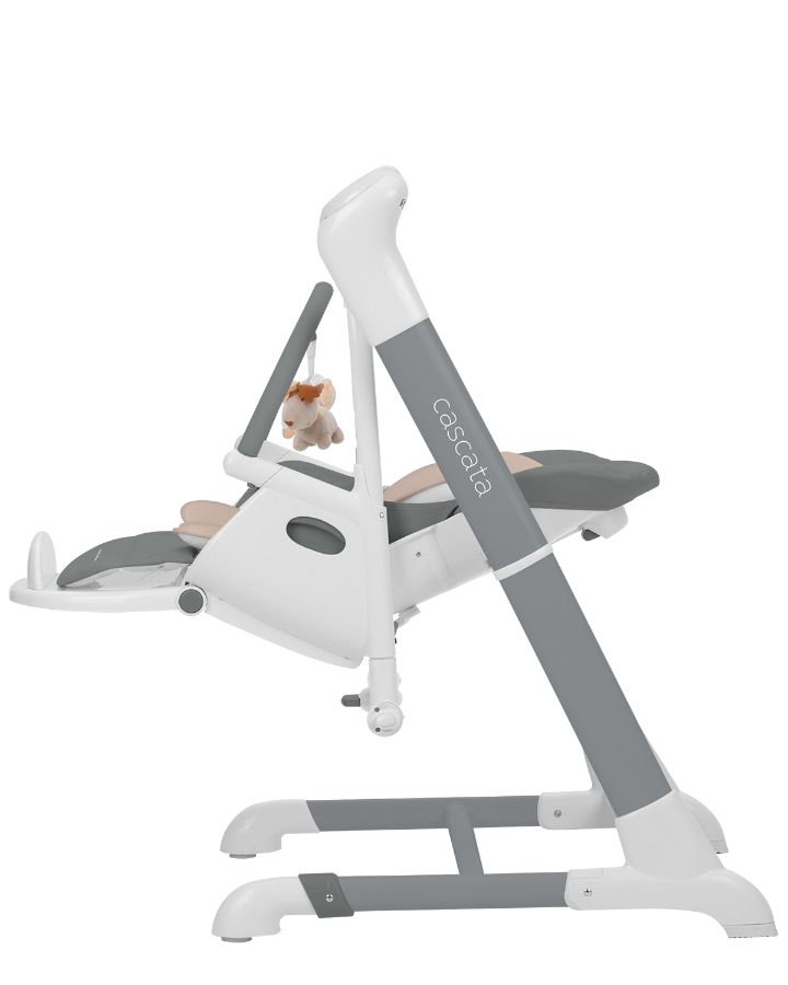 Музыкальное сопровождение на выбор: пение птиц и журчания воды, умиротворяющие детские мелодии и возможность подключения внешнего USB-накопителя с вашей музыкой. Cascata управляется с помощью приложения для телефона, или панели управления. QR-код для установки приложения можно найти в инструкции. Бесшумный маятниковый механизм позволяет укачивать ребенка в стульчике, как в обычных электронных качалках. Про развитие малыша позаботится музыкальный модуль с приятными мелодиями и дуга с красивыми мягкими игрушками. Так же есть функция обнаружения активности движения, которая автоматически включает медленный режим покачивания качели с музыкой на средней громкости.