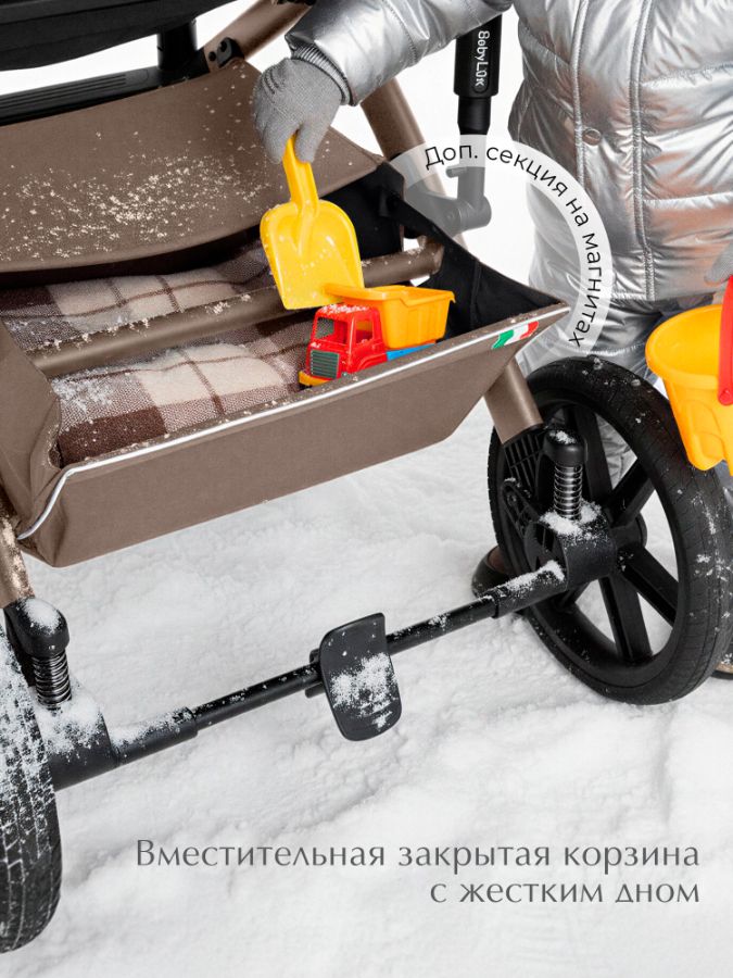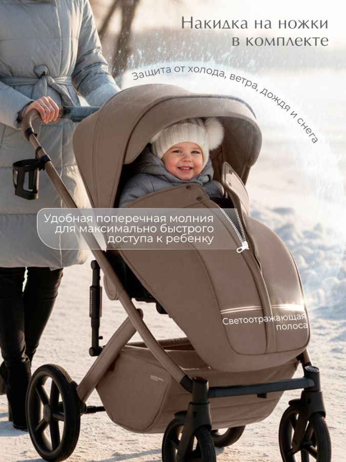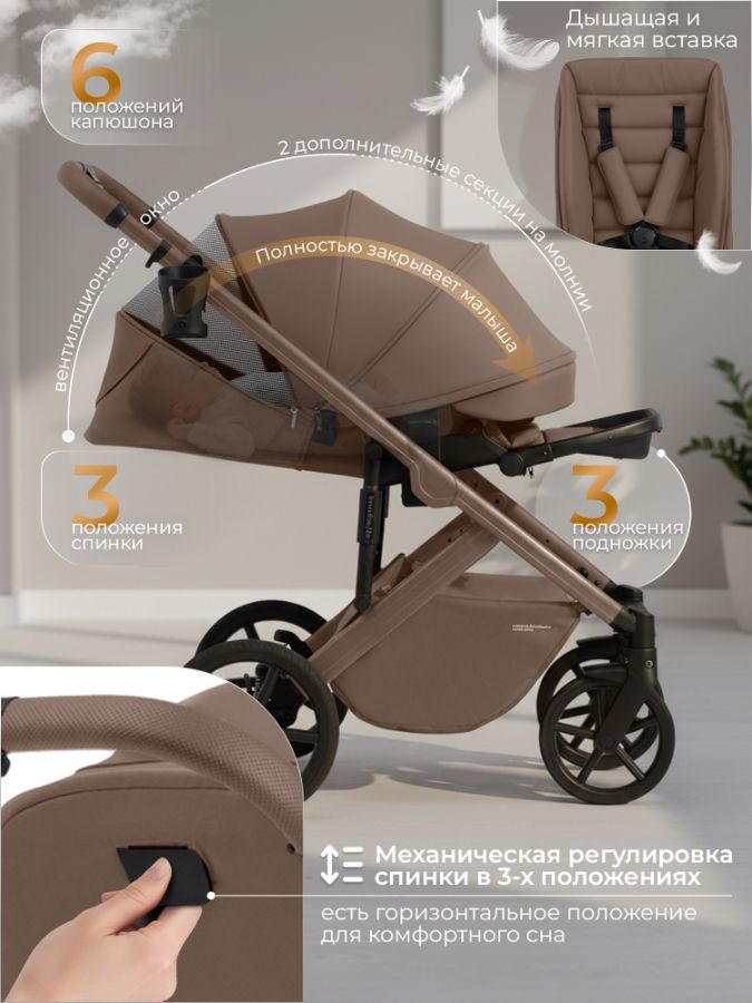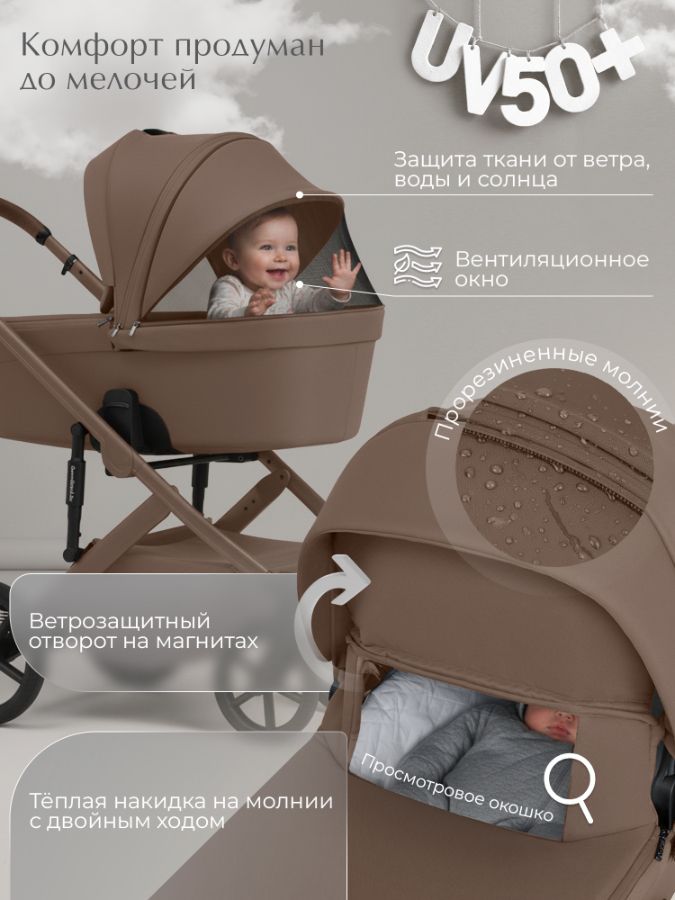 - Глубокий капюшон с защитой от ультрафиолета UV50 обеспечивает много тени для комфортного микроклимата, а скрытые секции полностью закроют малыша до самых ножек.