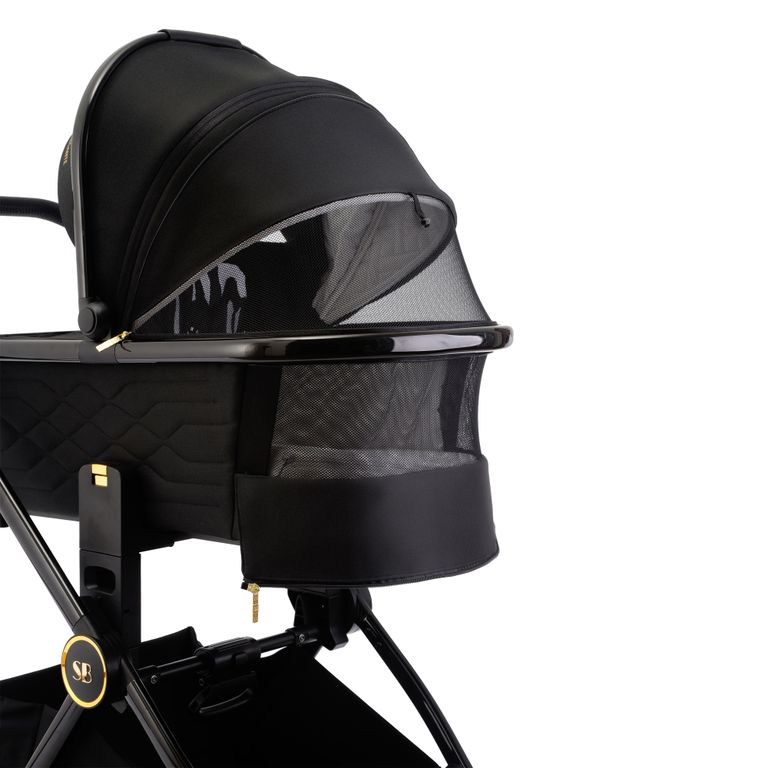 - система циркуляции воздуха в жаркие летние дни на капоре люльки, у изголовья и у ножек есть москитные сетки, спрятанные под молнией;