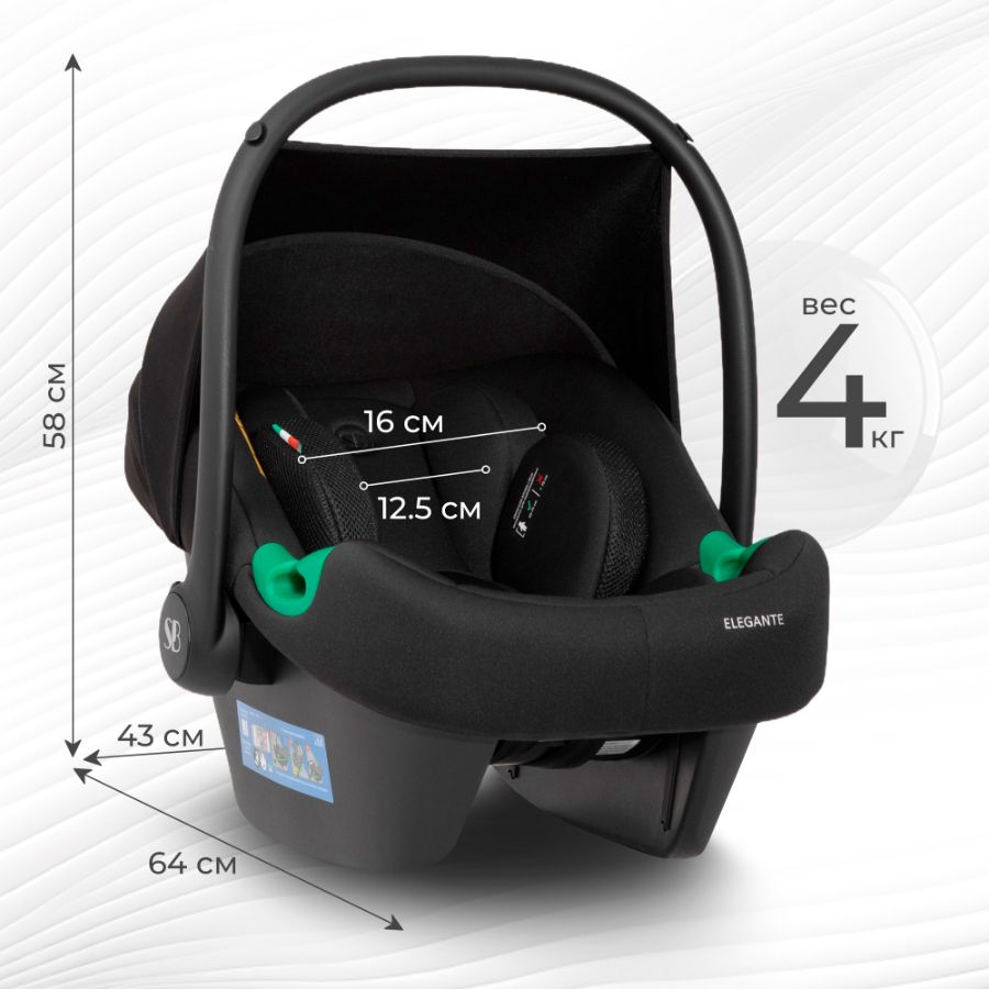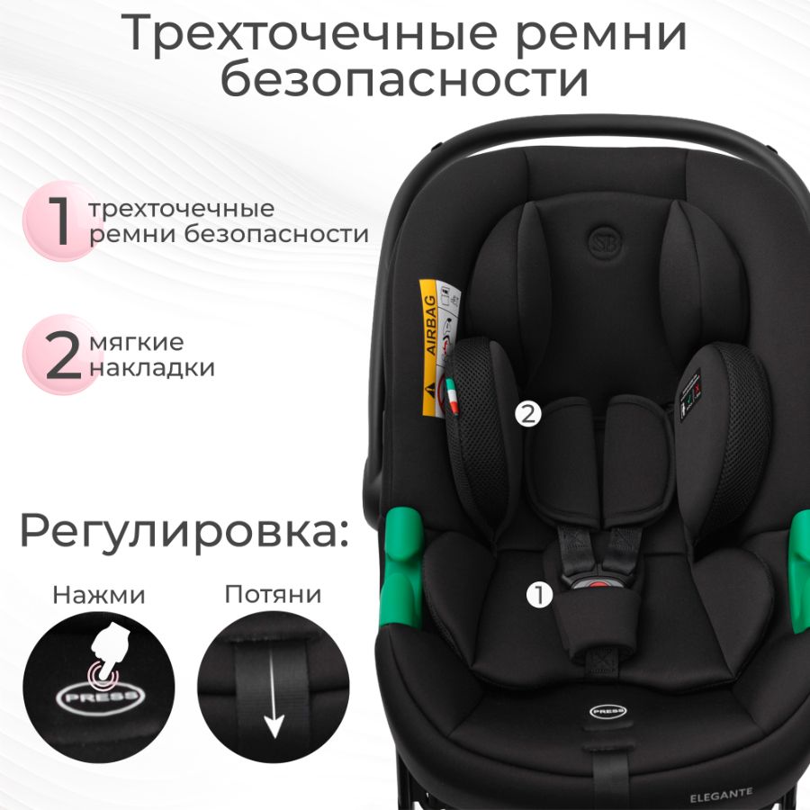 - Соответсвует современному европейскому стандарту ECE R129. Будьте уверены в качестве и надежности Elegante Plus;